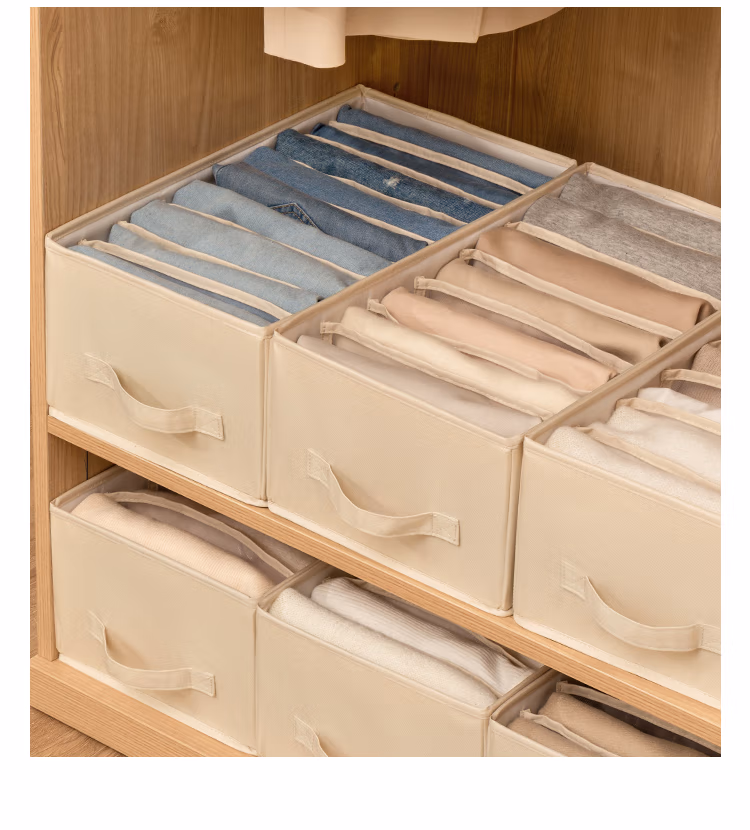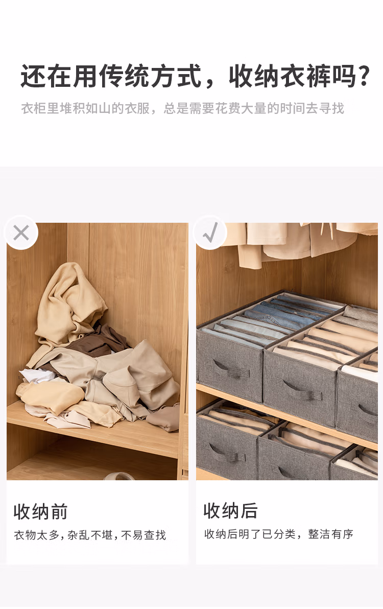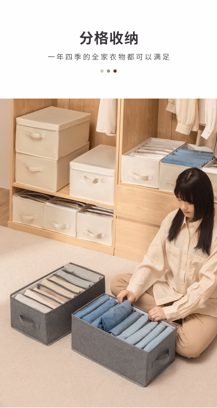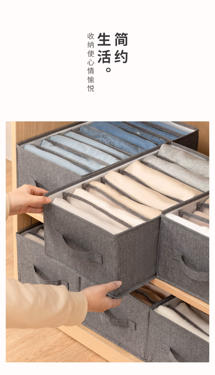 EACHY衣服裤子收纳盒子衣柜收纳神器分隔牛仔裤分格整理收纳箱套装 深灰-7格【格宽6.4 收纳长裤/牛仔裤】