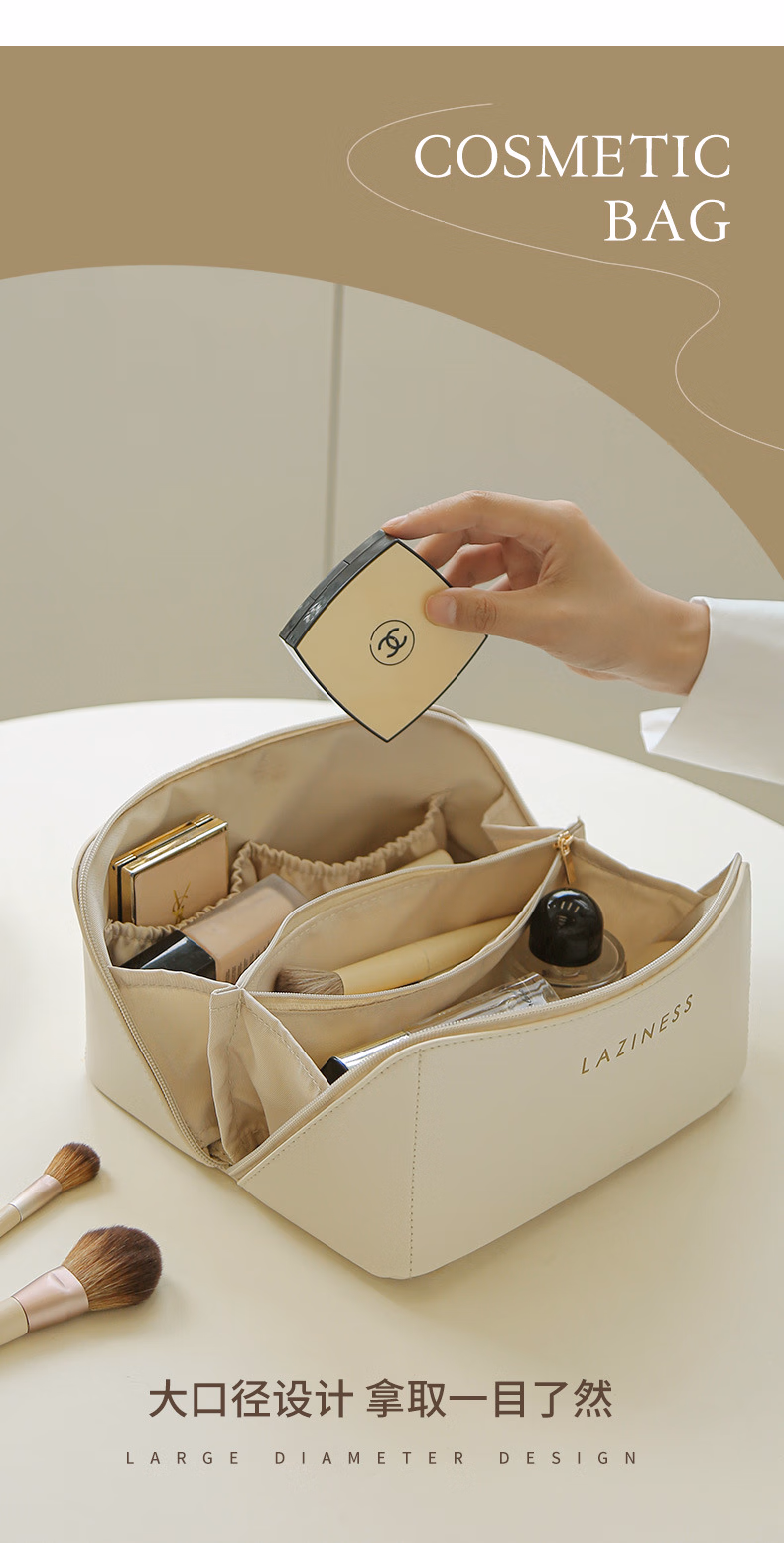柏苑化妆包女大容量便携ins高级感网红2022新款超火旅行品洗漱收纳袋 奶幸白