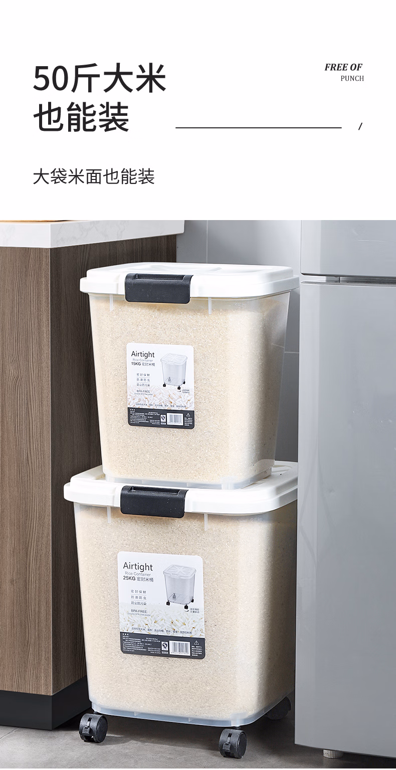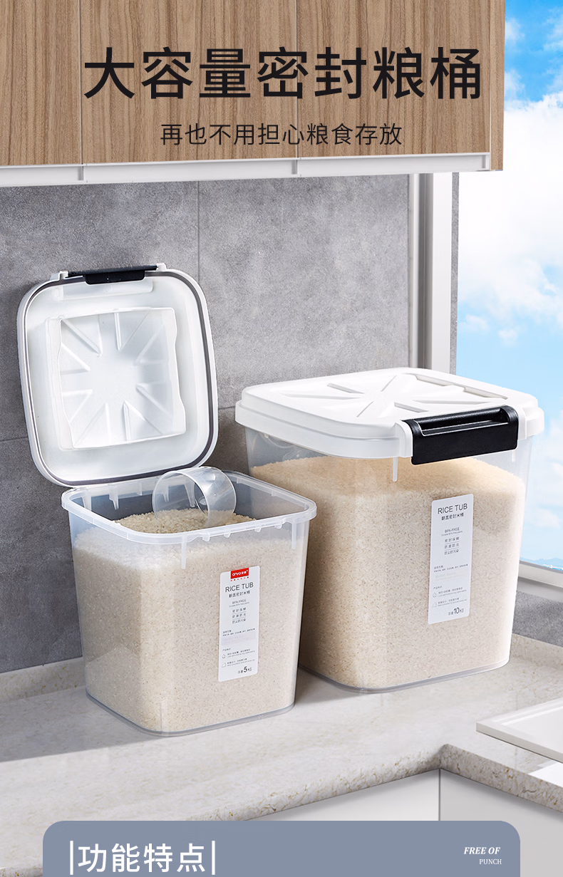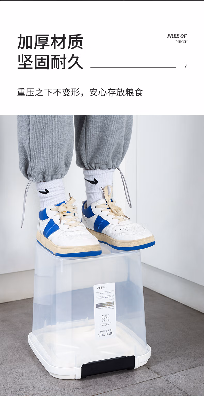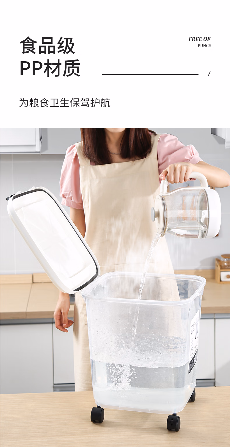 今米(jinmi)装米桶防虫防潮密封家用储米箱面粉储存罐大米收纳盒20斤米缸 【不带滚轮】10斤-透明白 大量杯