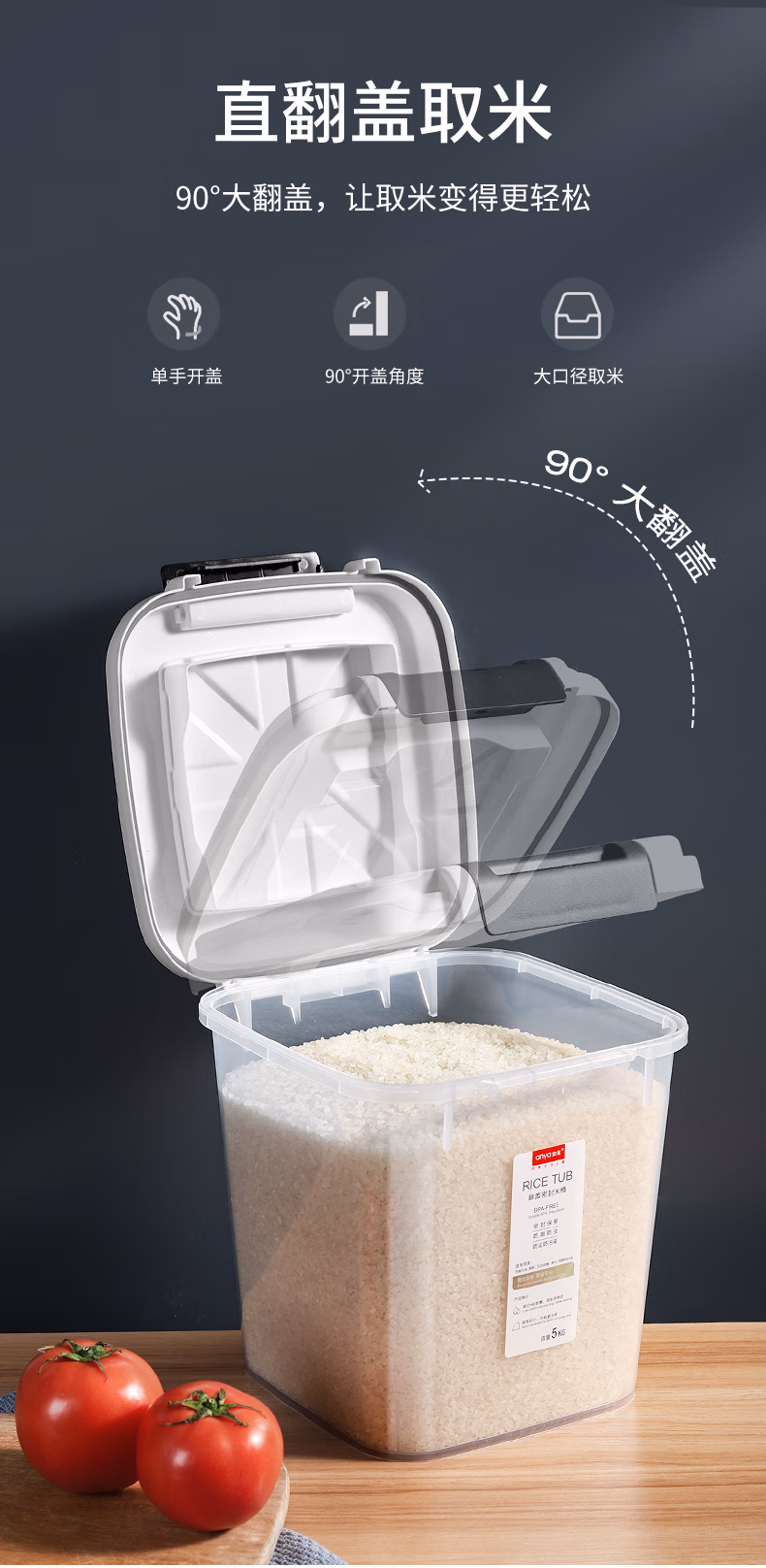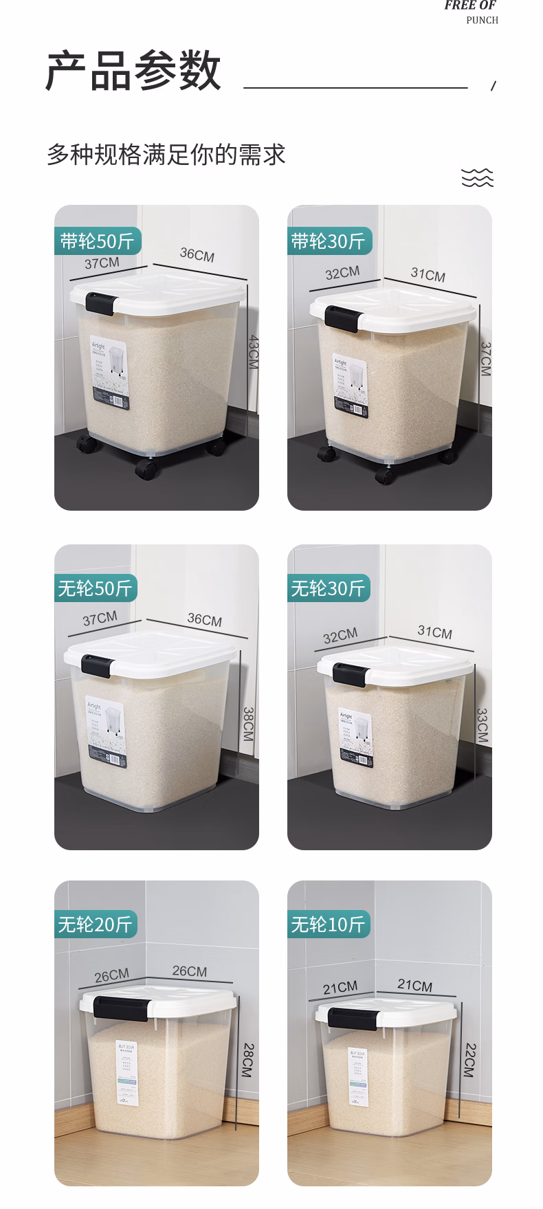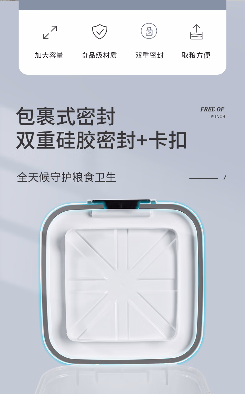 今米(jinmi)装米桶防虫防潮密封家用储米箱面粉储存罐大米收纳盒20斤米缸 【不带滚轮】10斤-透明白 大量杯