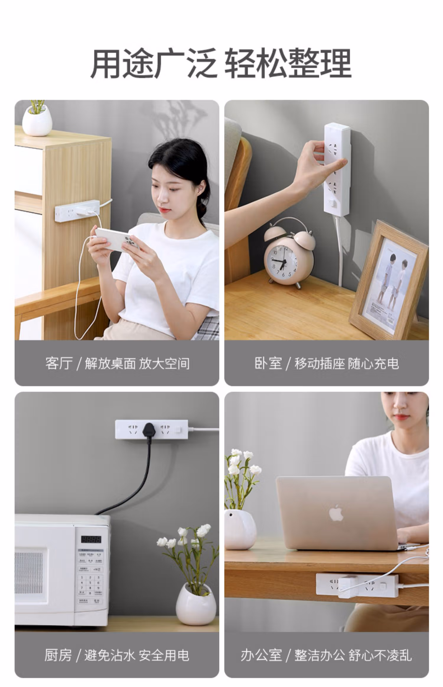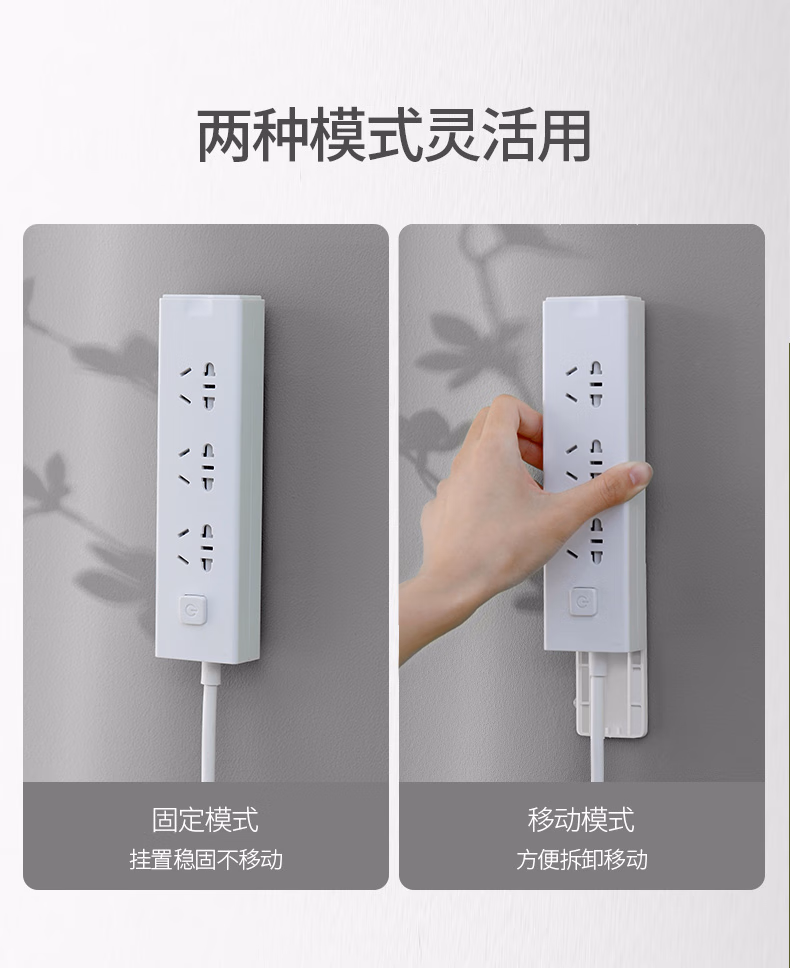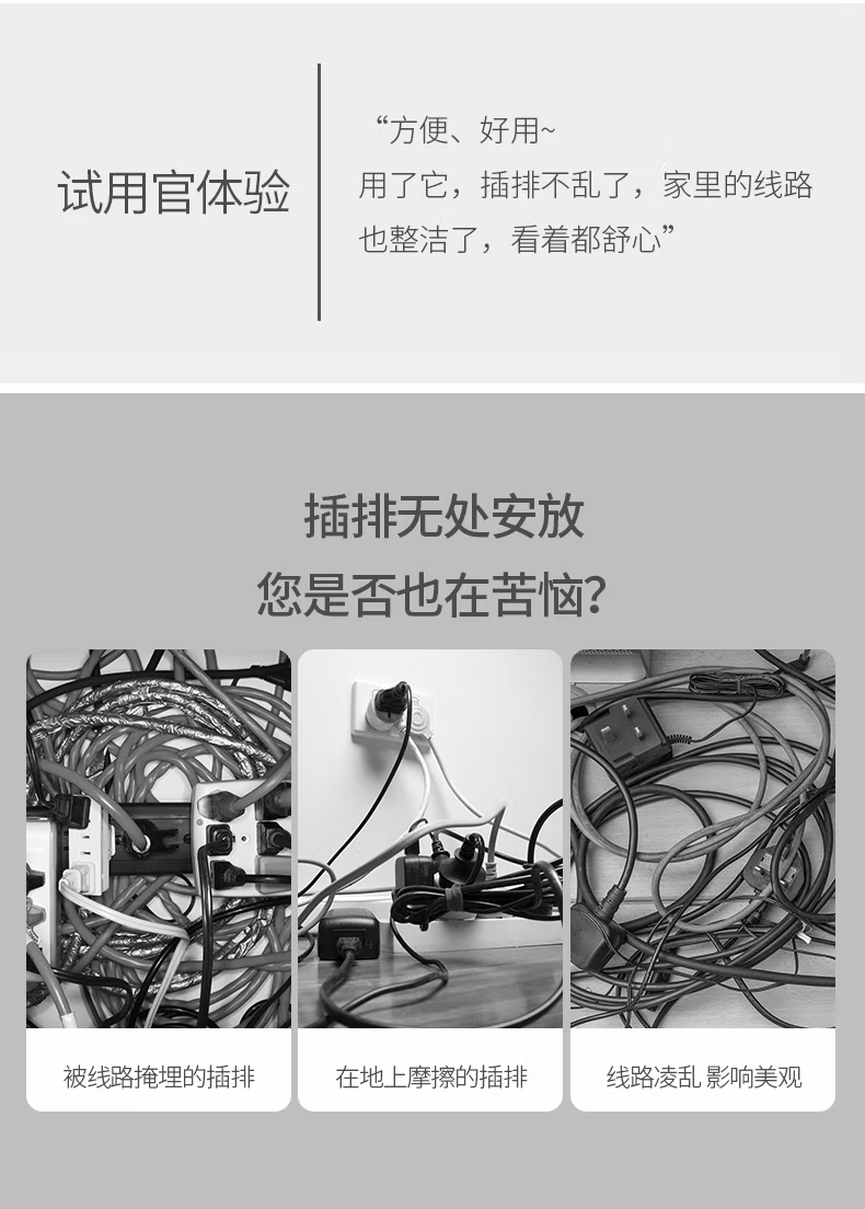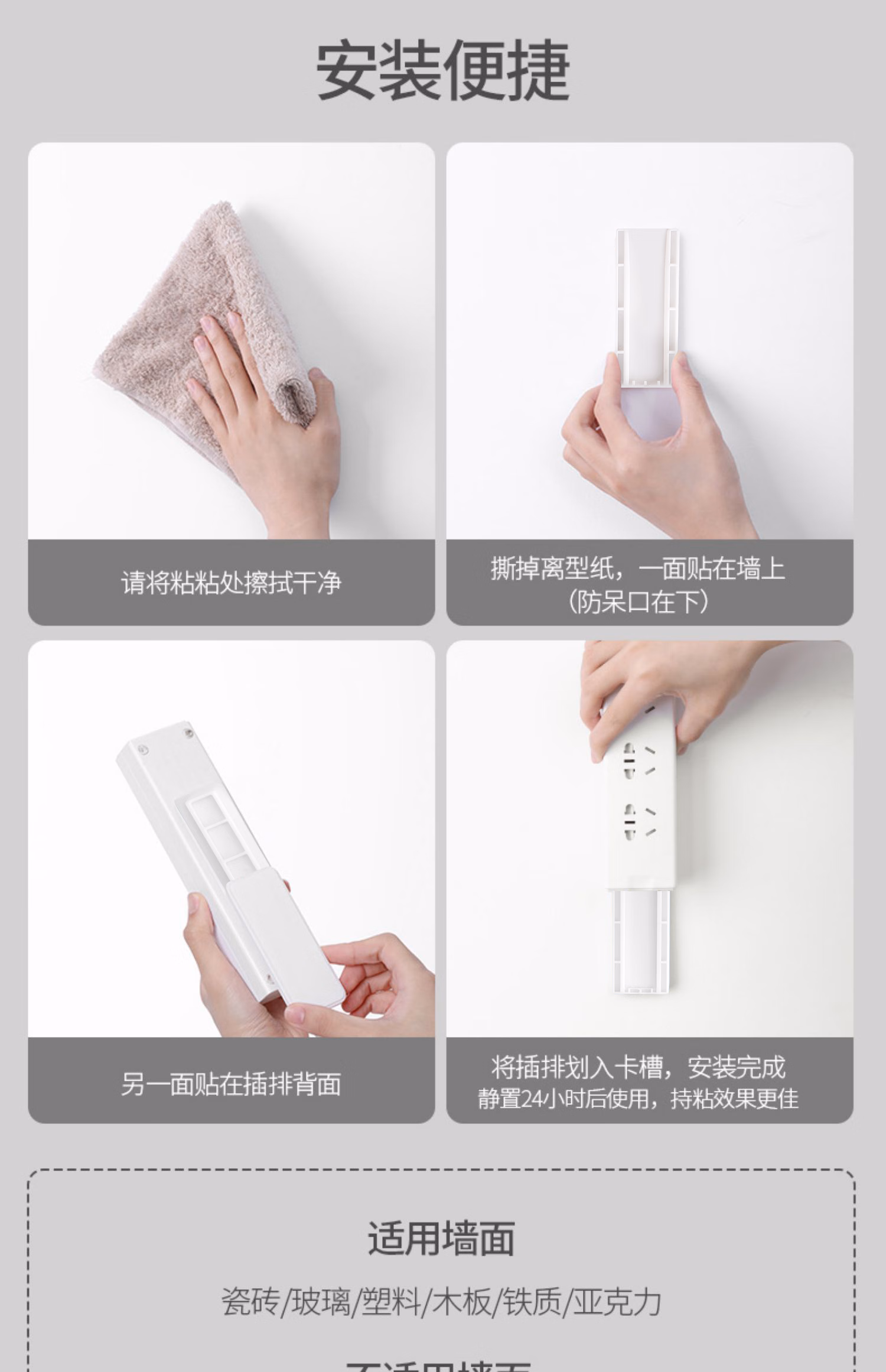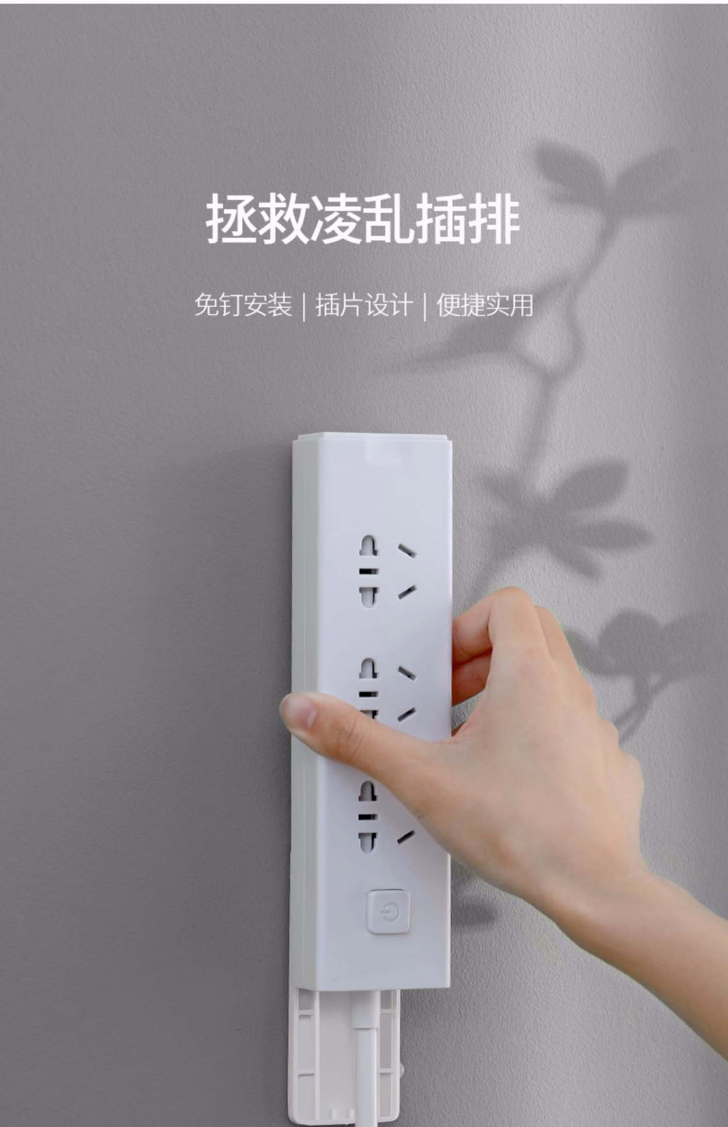 皓梵洁插排固定器桌子墙面粘贴免打孔固定器壁挂路由器插线电线网线走线卡线神器理线槽插座收纳盒 两个装