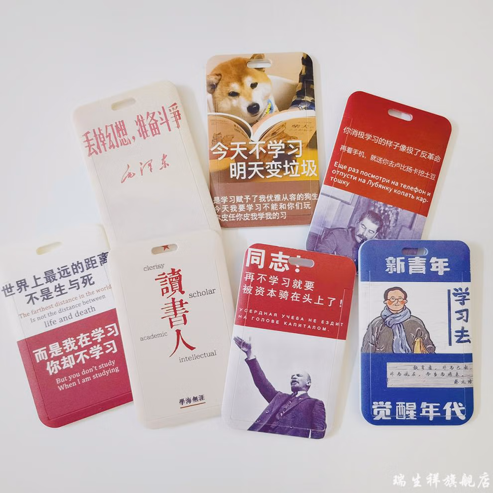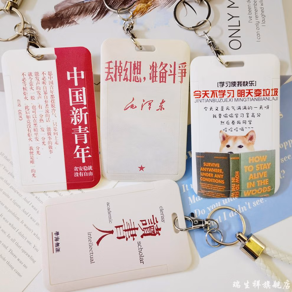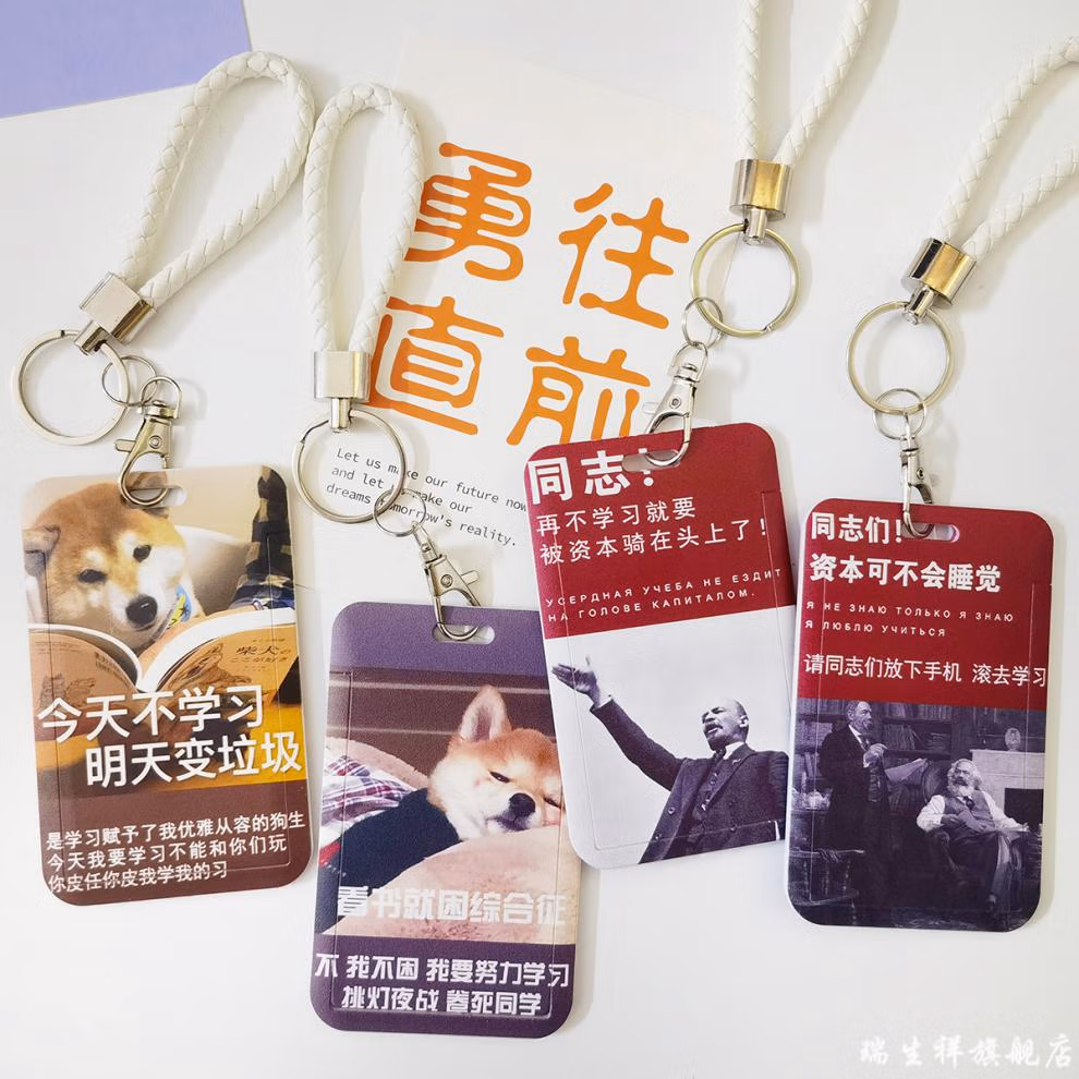 卡套正能量励志学生卡套证件套食堂饭卡套胸牌校园正能量卡套门禁卡工牌厂牌吊牌男女搞怪保护壳透明挂脖长绳D840-放下手机学习(配编制皮绳白)