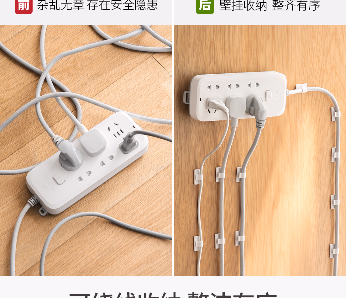 懒角落插排固定器免打孔拖线板壁挂路由器插座收纳盒电线卡网线走线盒桌面收纳 基础款