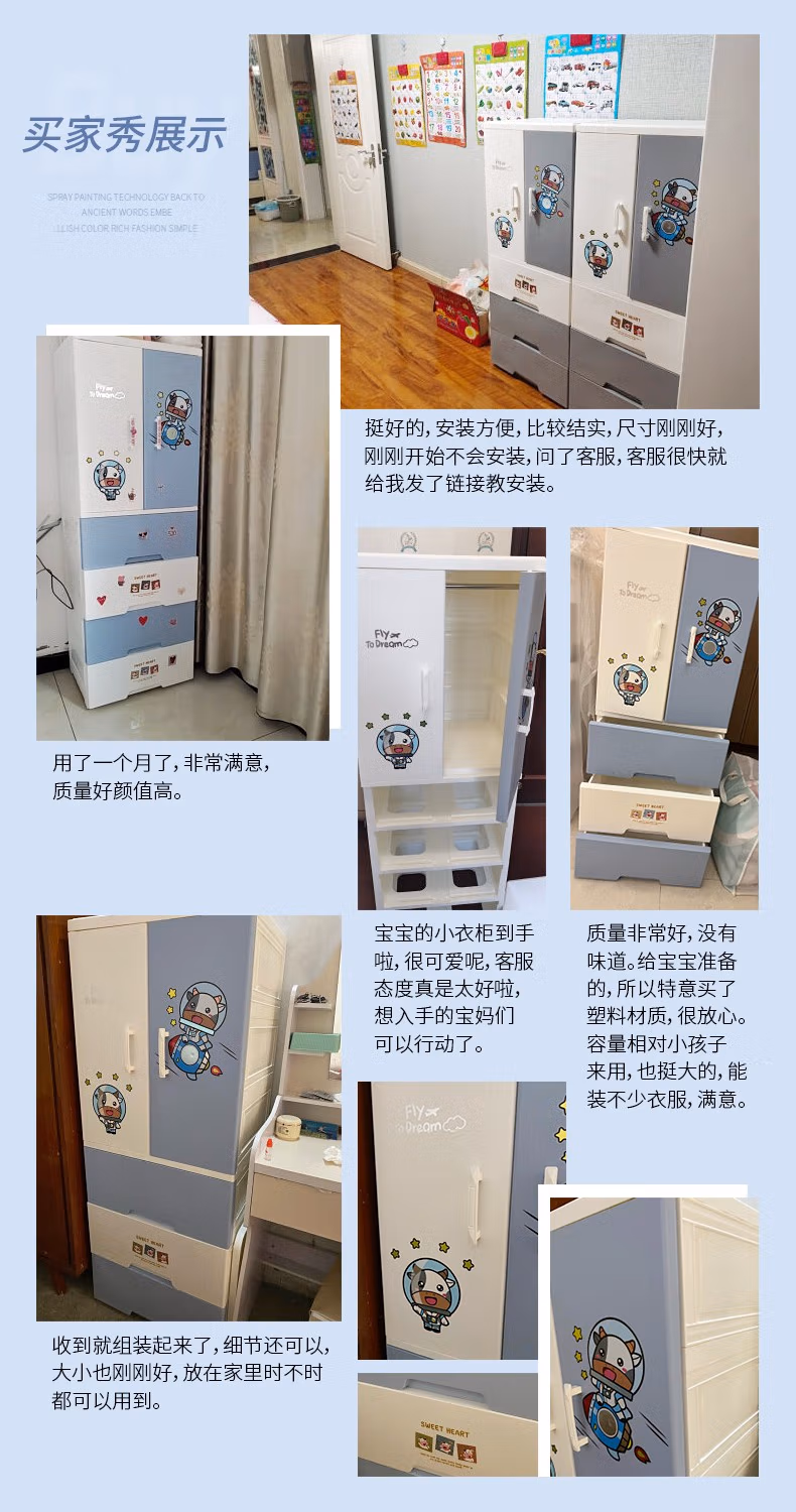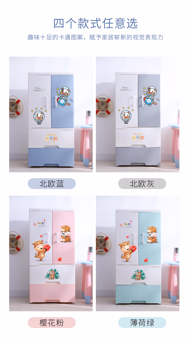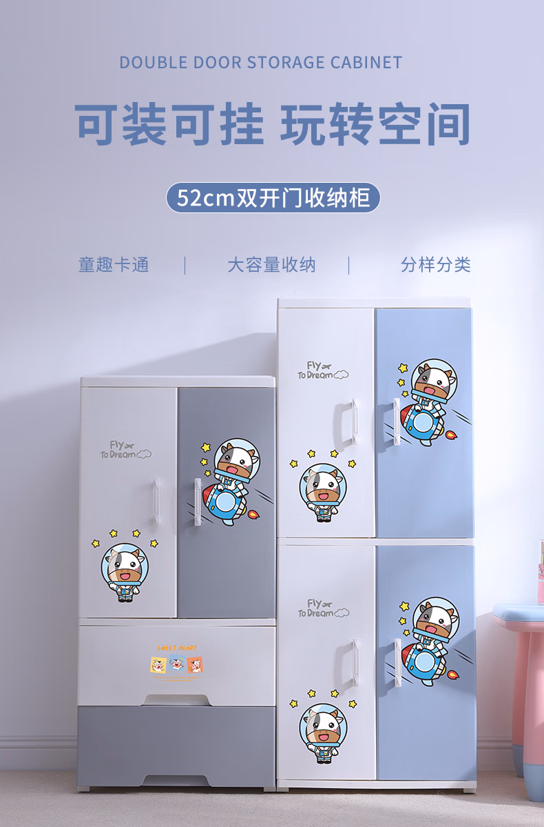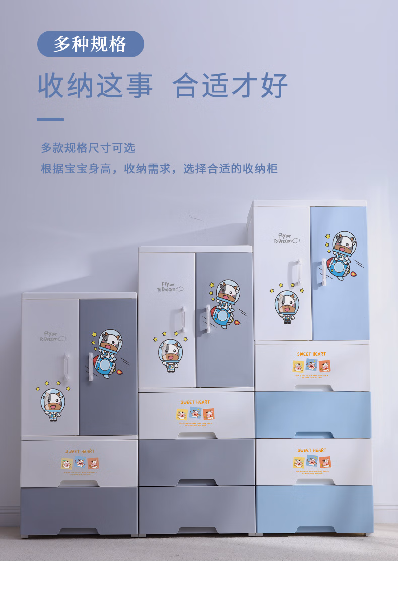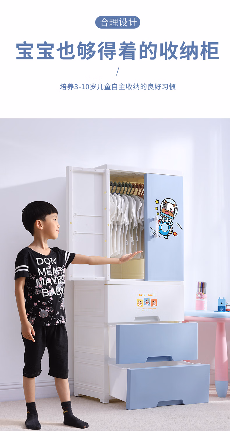 纳雅乐(NAYALER)纳雅乐抽屉式收纳柜儿童衣柜塑料柜子宝宝衣柜婴儿储物柜可挂衣衣橱床头柜卧室柜 1门 2抽北欧蓝 运输破损免费补发