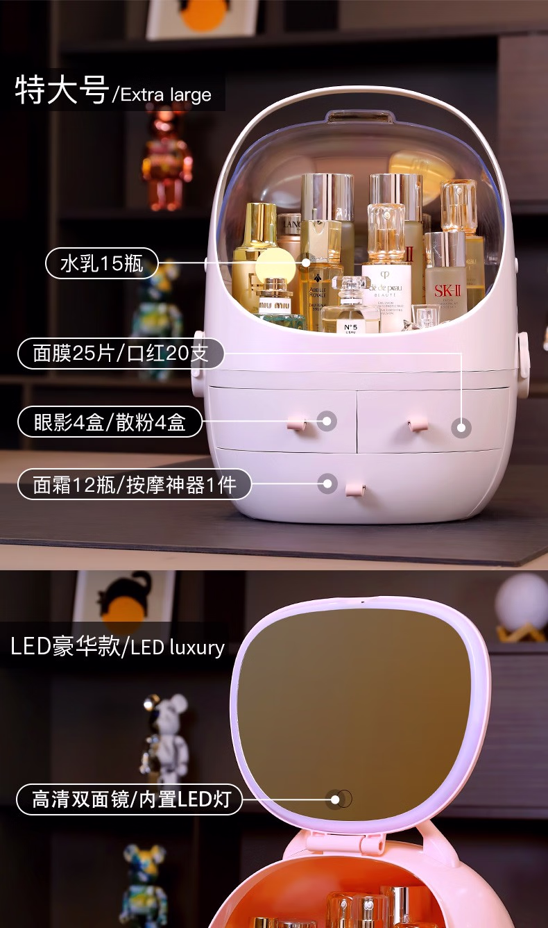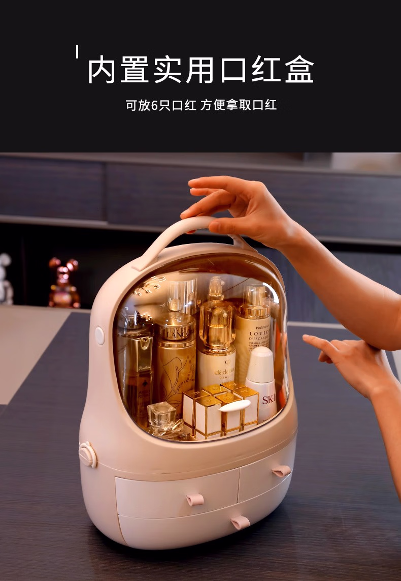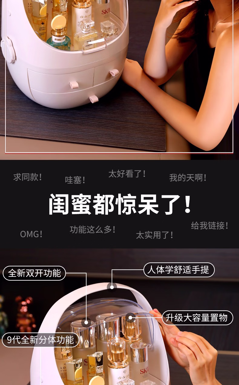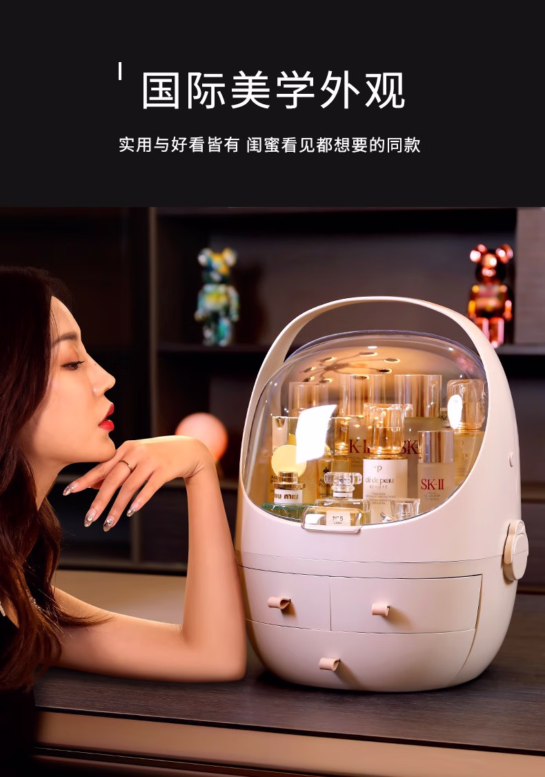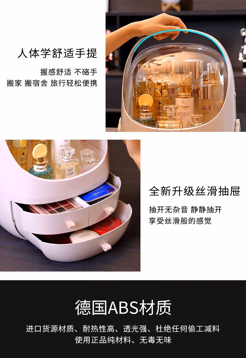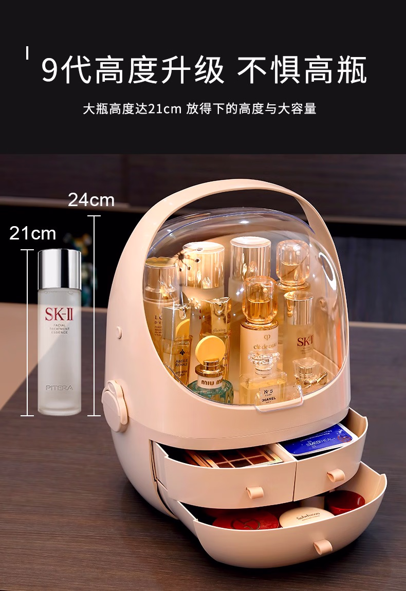 乔时姿化妆品收纳盒化妆盒护肤品首饰桌面收纳箱妆盒抽屉式生日礼物女老婆女友教师节女老师礼品便携太空舱 大号三层佳人粉【大容量/可手提/可分体/可双开】 【高度升级 无缝防尘 硅胶触感】
