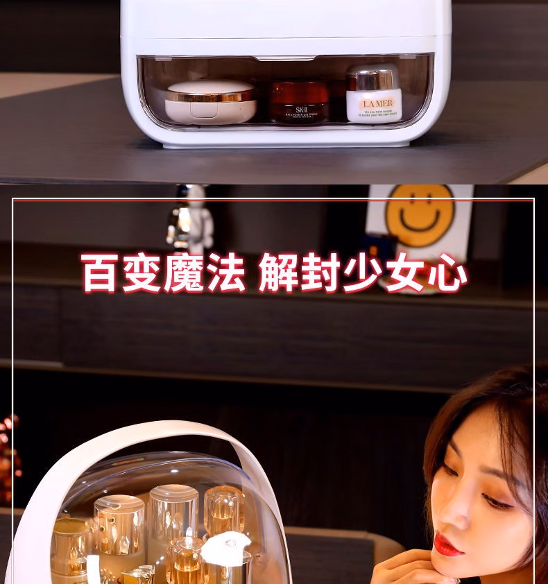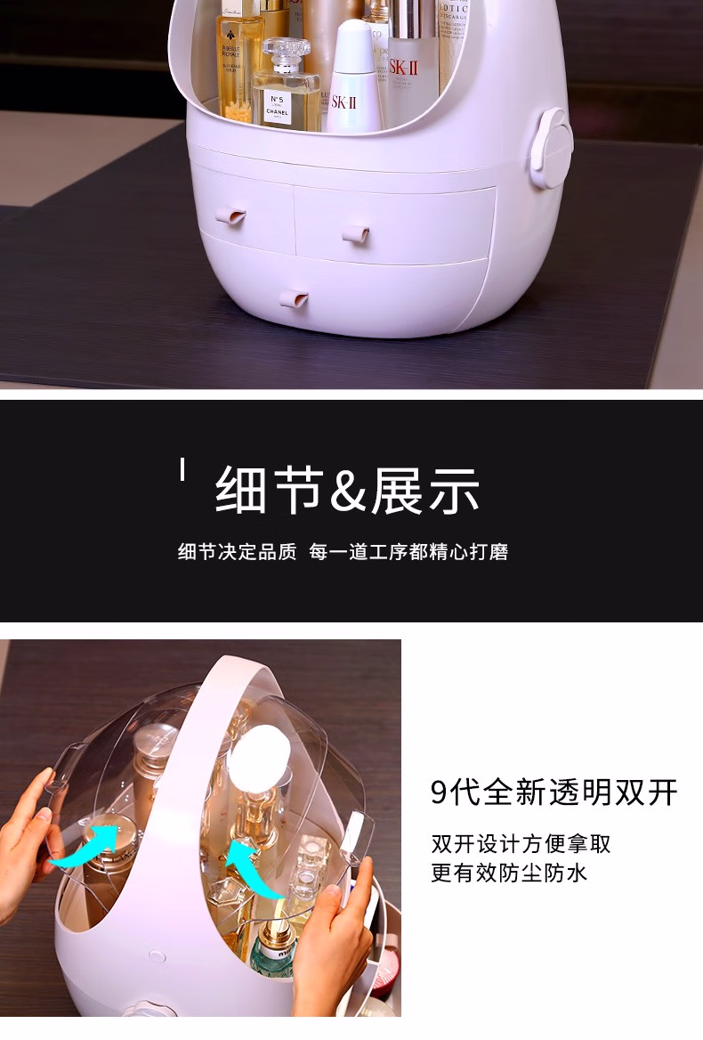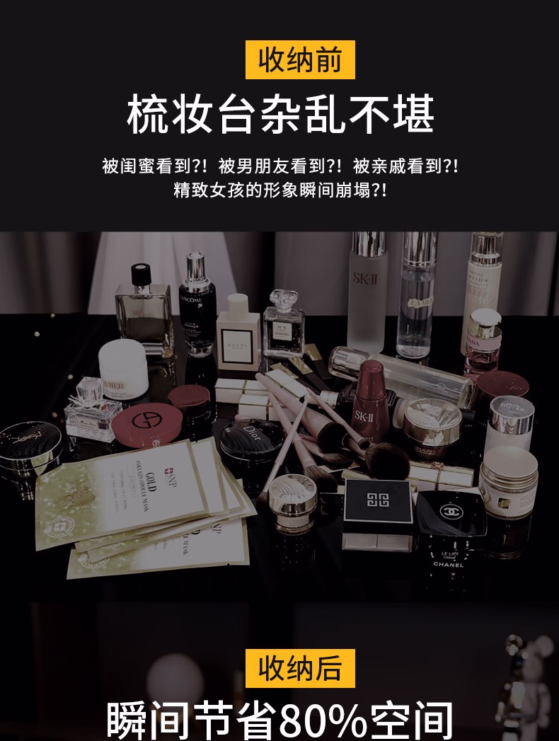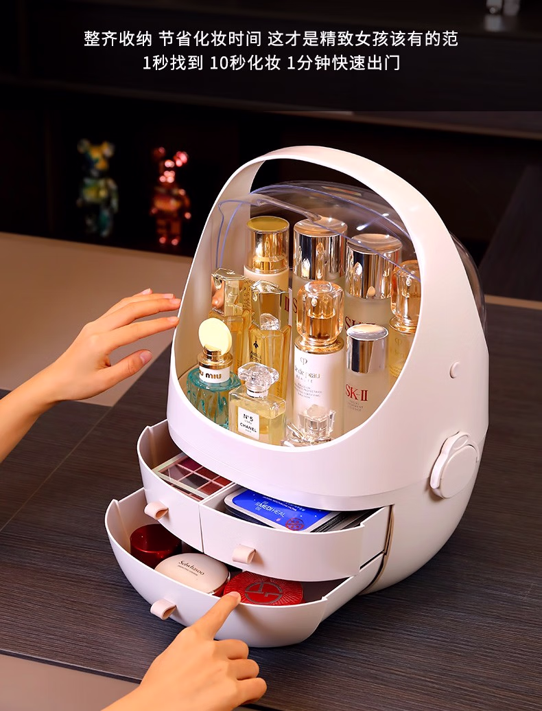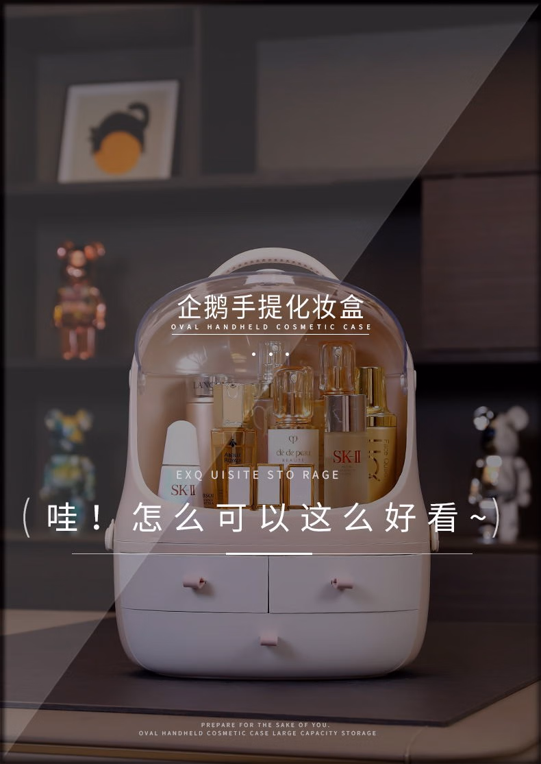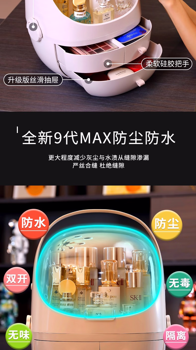 乔时姿化妆品收纳盒化妆盒护肤品首饰桌面收纳箱妆盒抽屉式生日礼物女老婆女友教师节女老师礼品便携太空舱 大号三层佳人粉【大容量/可手提/可分体/可双开】 【高度升级 无缝防尘 硅胶触感】