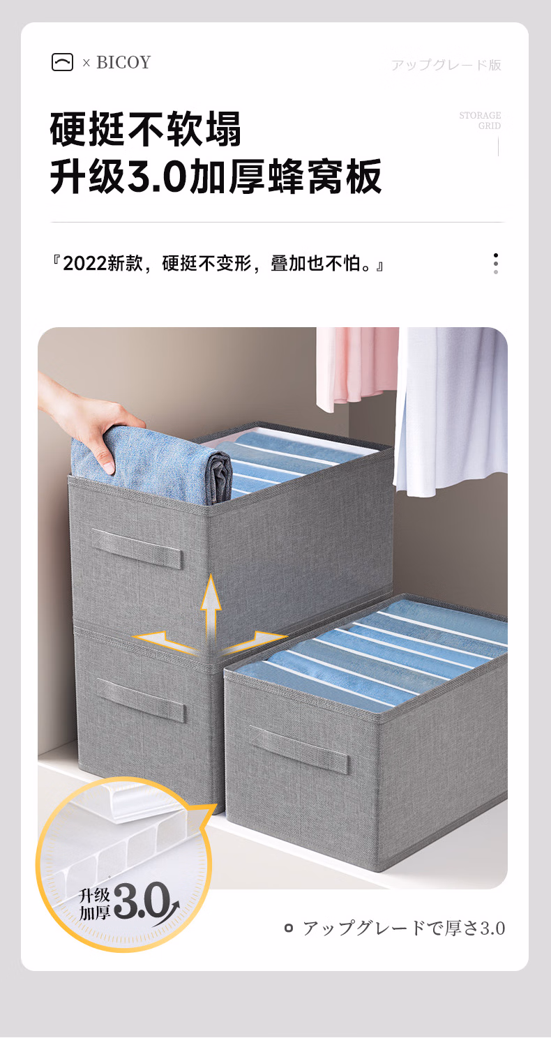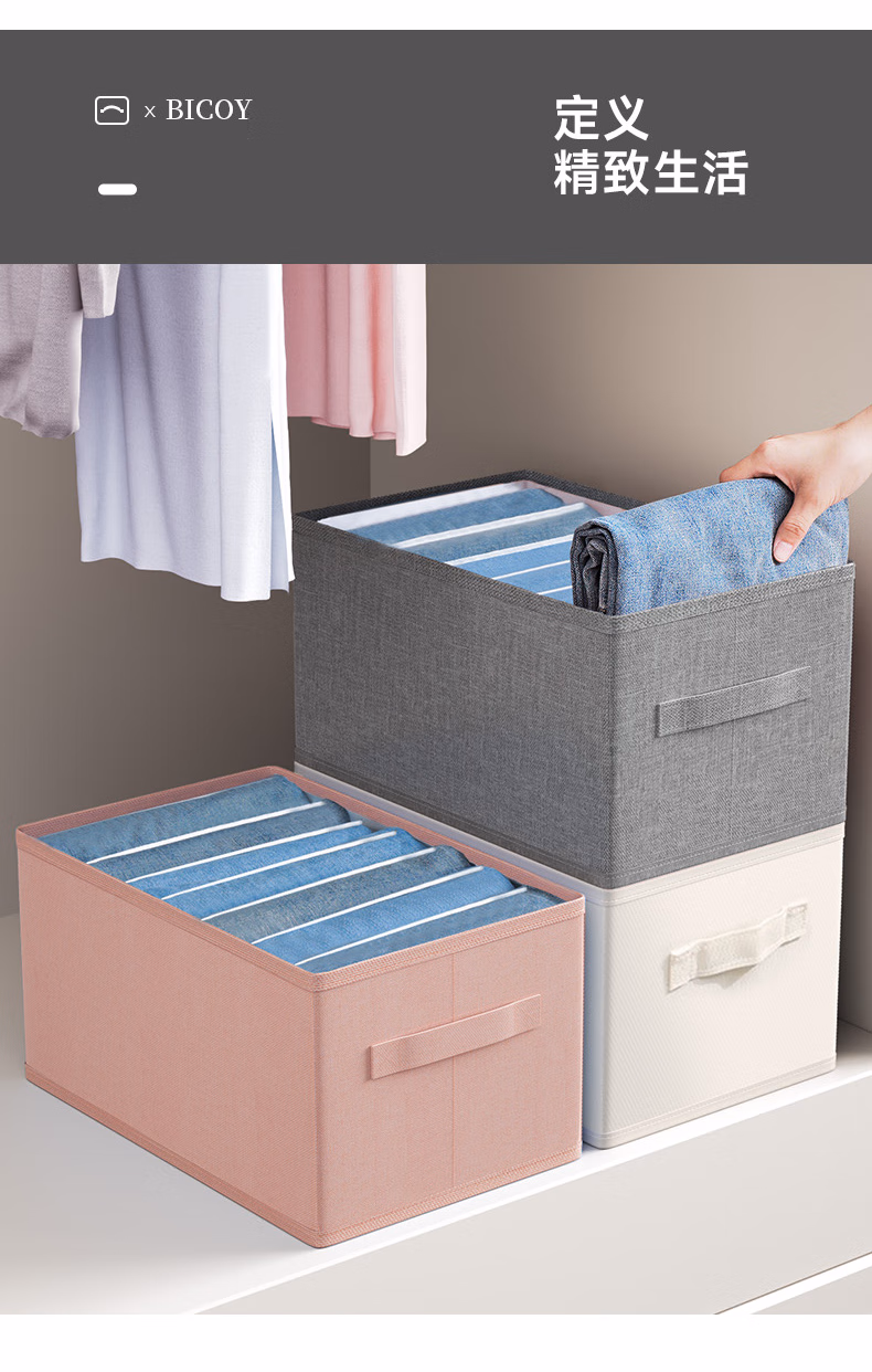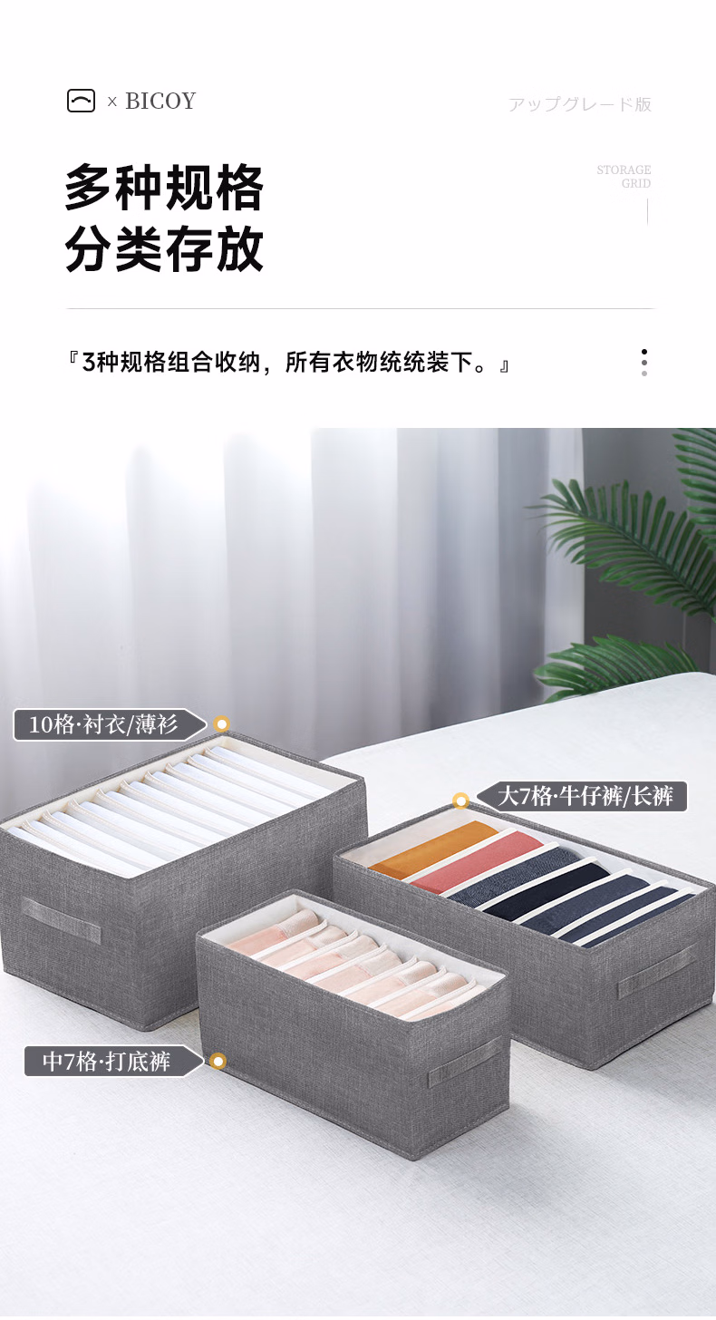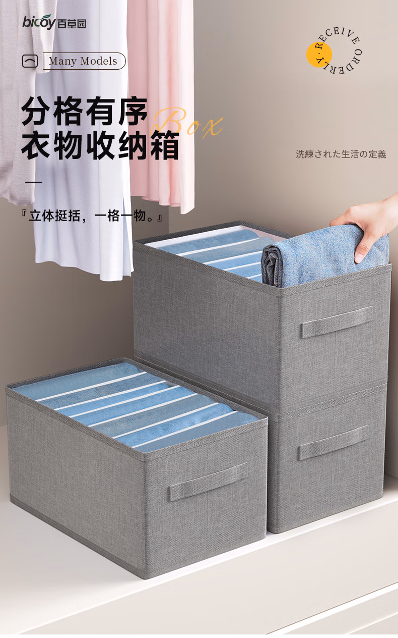百草园衣柜收纳盒衣服裤子收纳神器牛仔裤衣物分隔分层整理收纳箱套装灰-特大7格【格宽5收纳衬衣/T恤/打底】