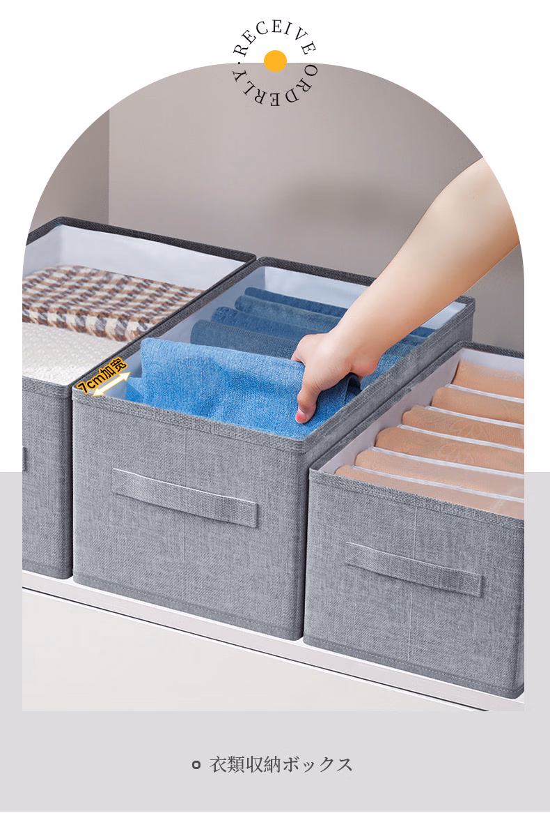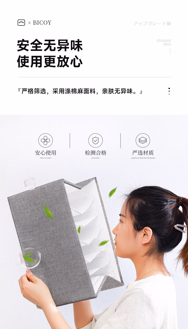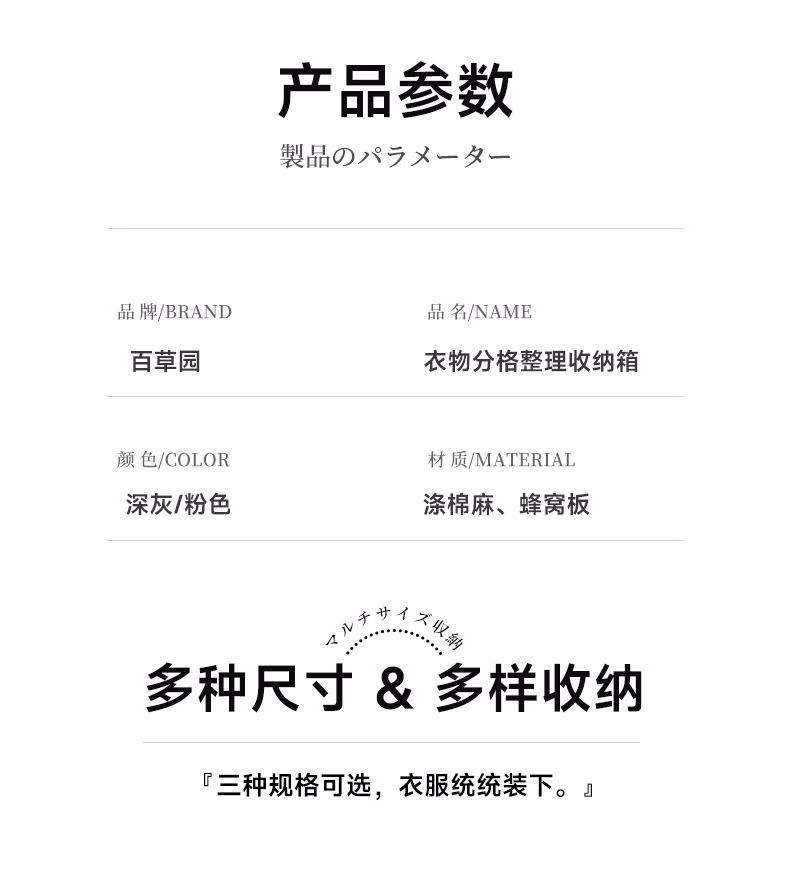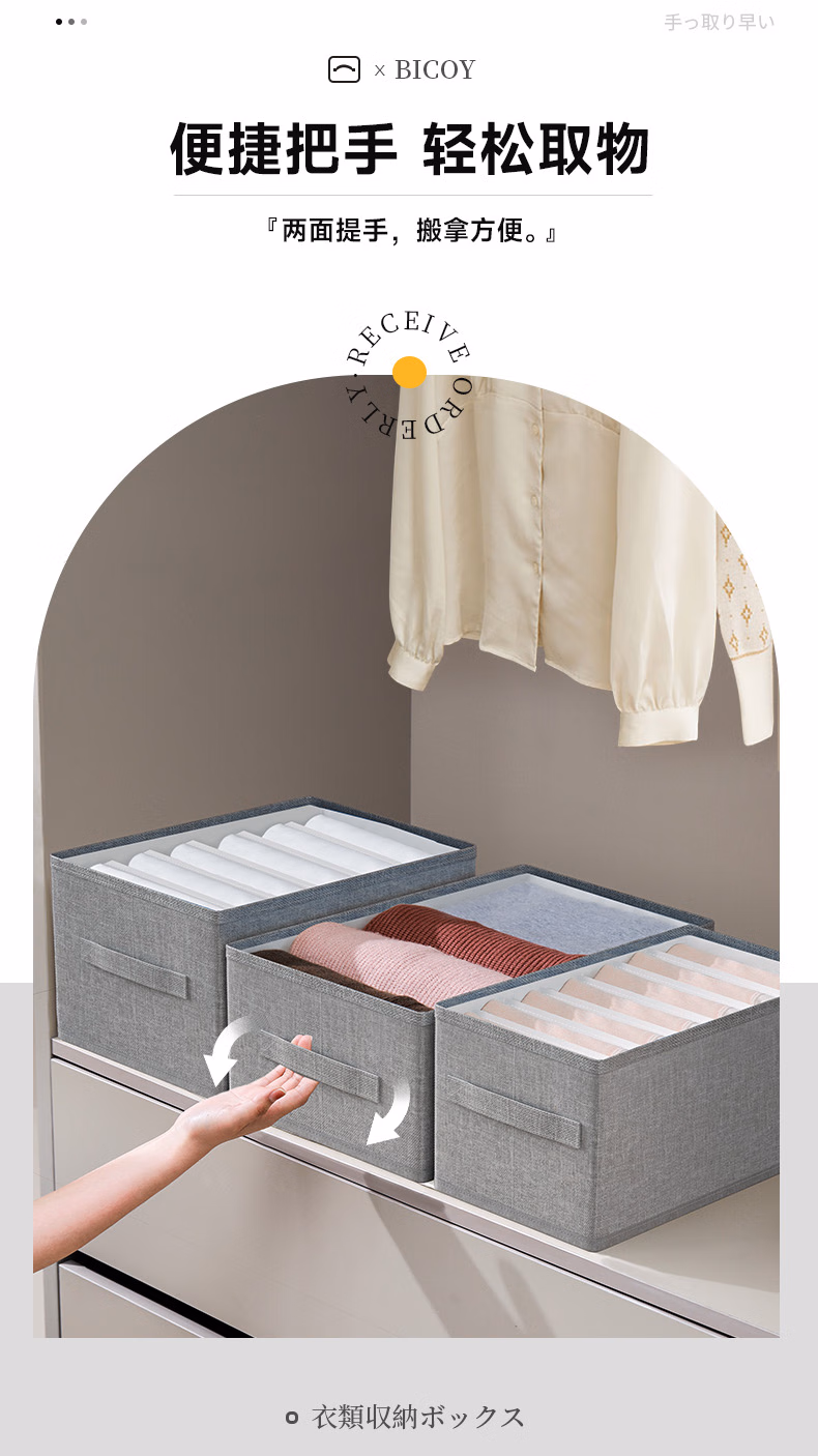 百草园衣柜收纳盒衣服裤子收纳神器牛仔裤衣物分隔分层整理收纳箱套装灰-特大7格【格宽5收纳衬衣/T恤/打底】