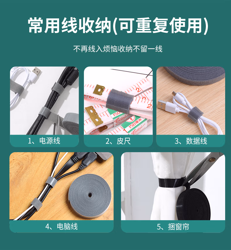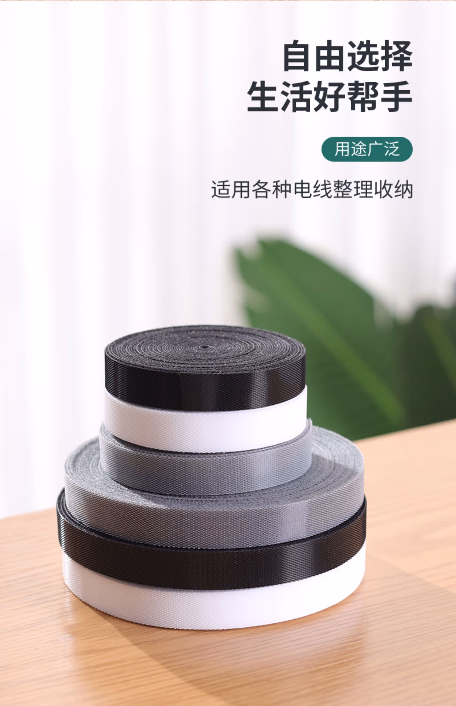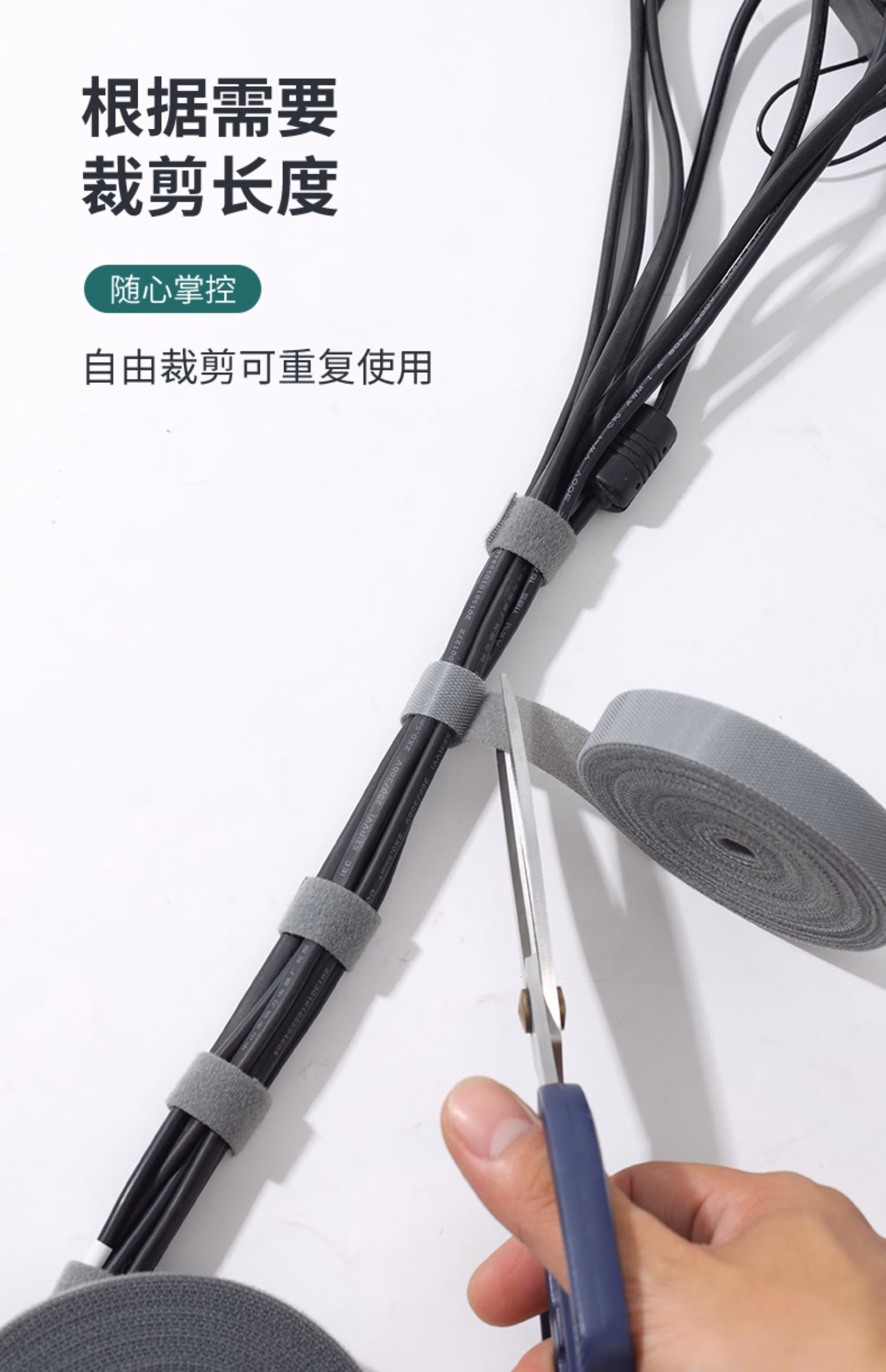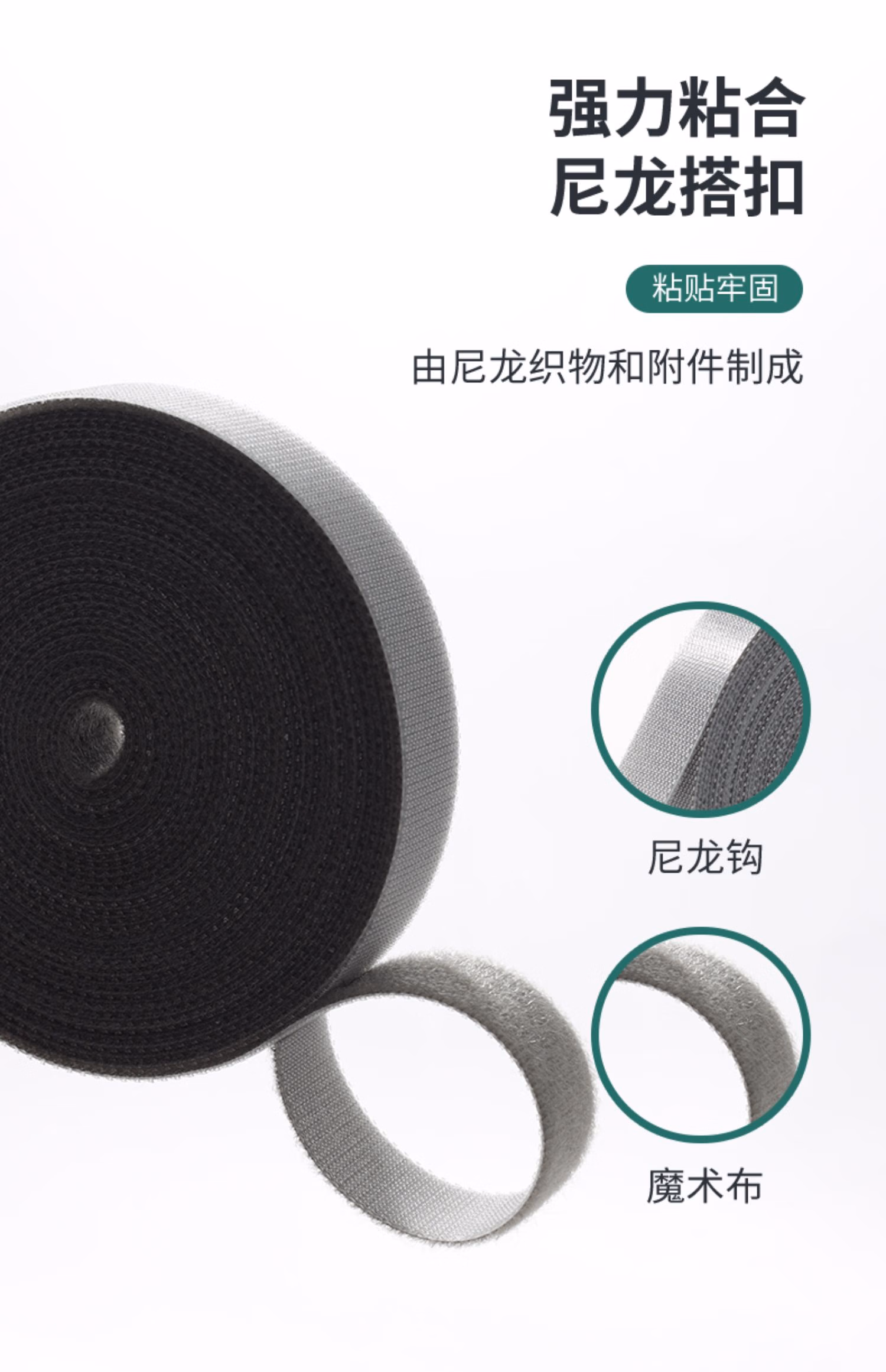 竹缇数据线收纳充电线魔术贴扎带束绑带绕线集电脑固定理线器整理收纳黑色一卷装1.5cm*5m