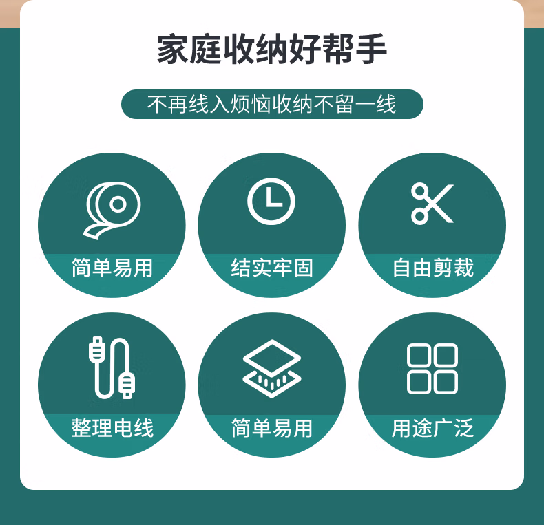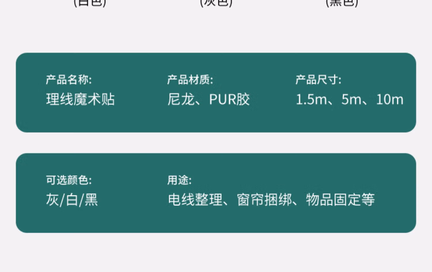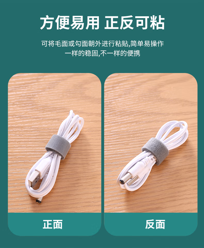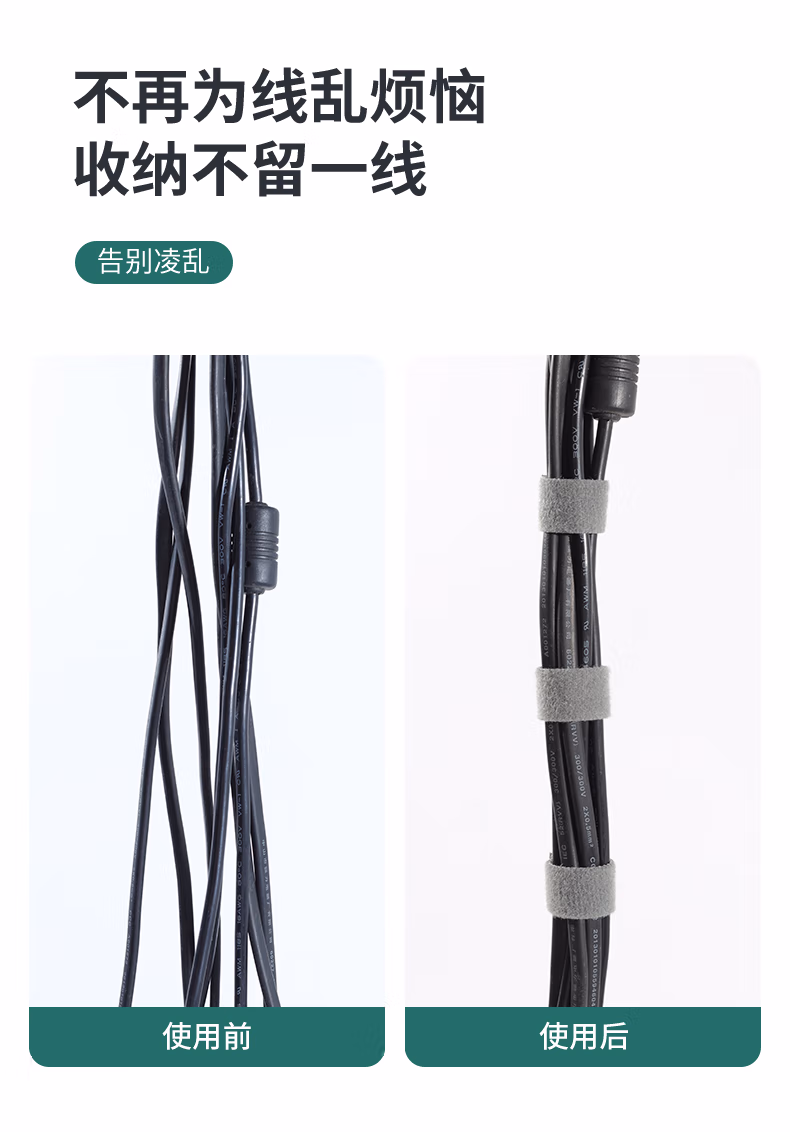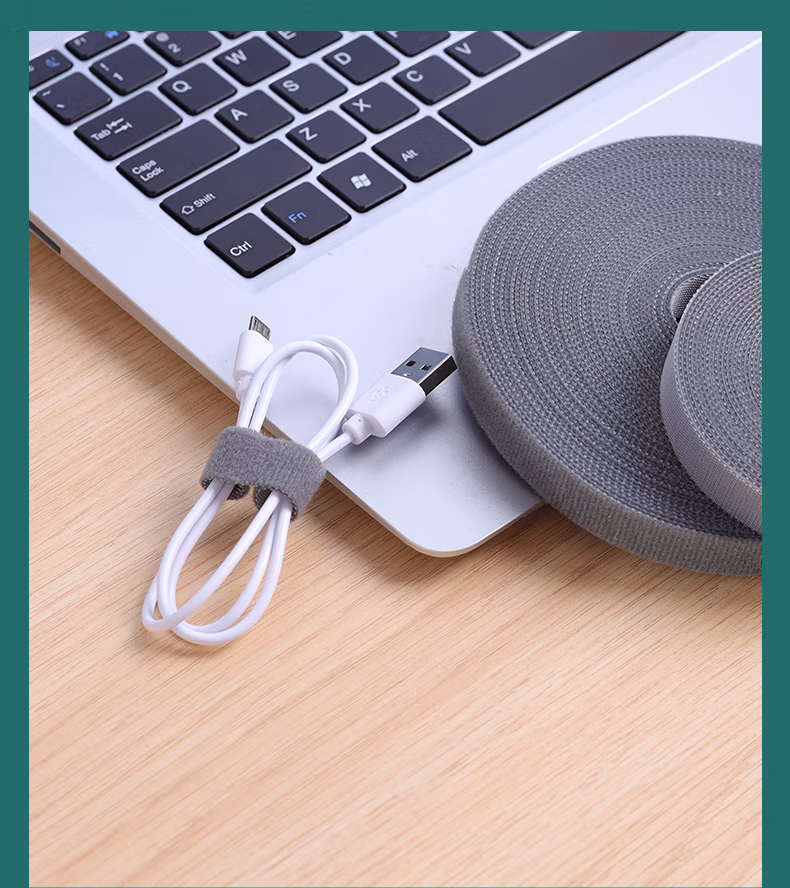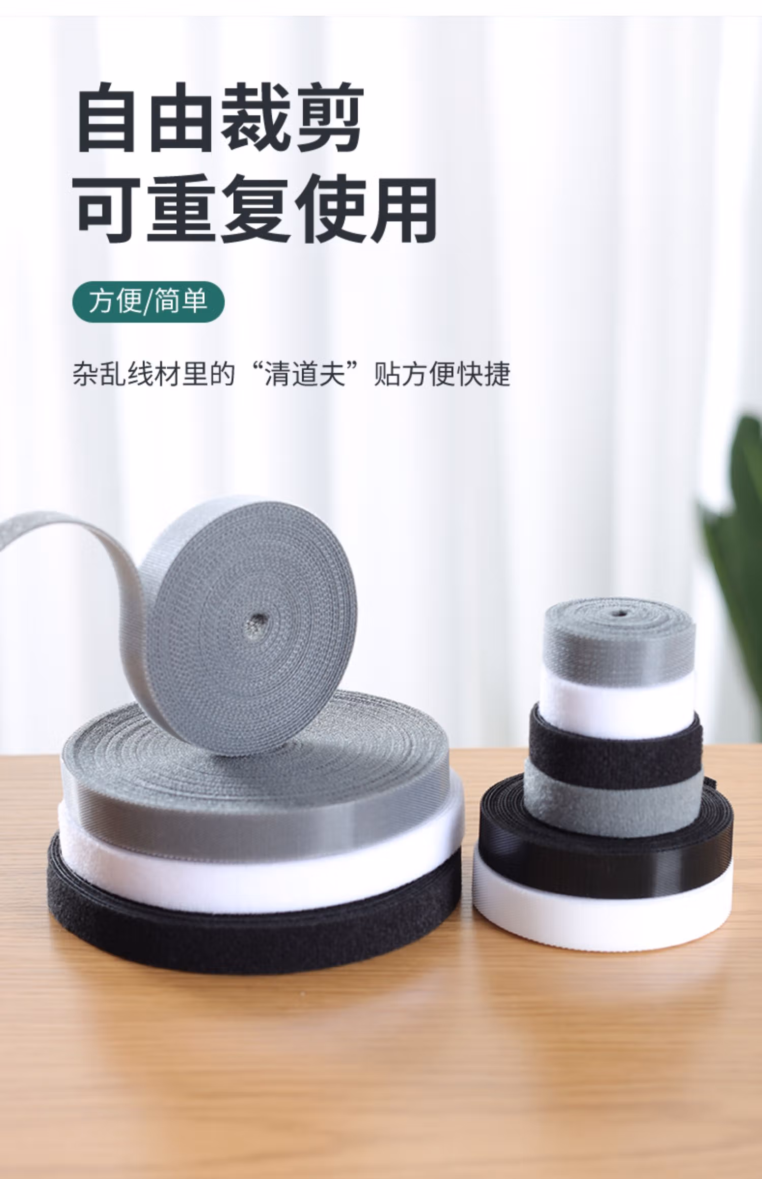 竹缇数据线收纳充电线魔术贴扎带束绑带绕线集电脑固定理线器整理收纳黑色一卷装1.5cm*5m