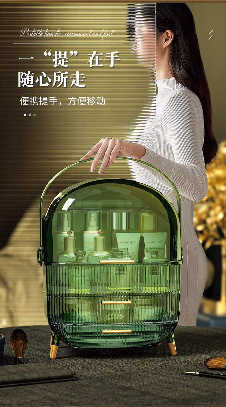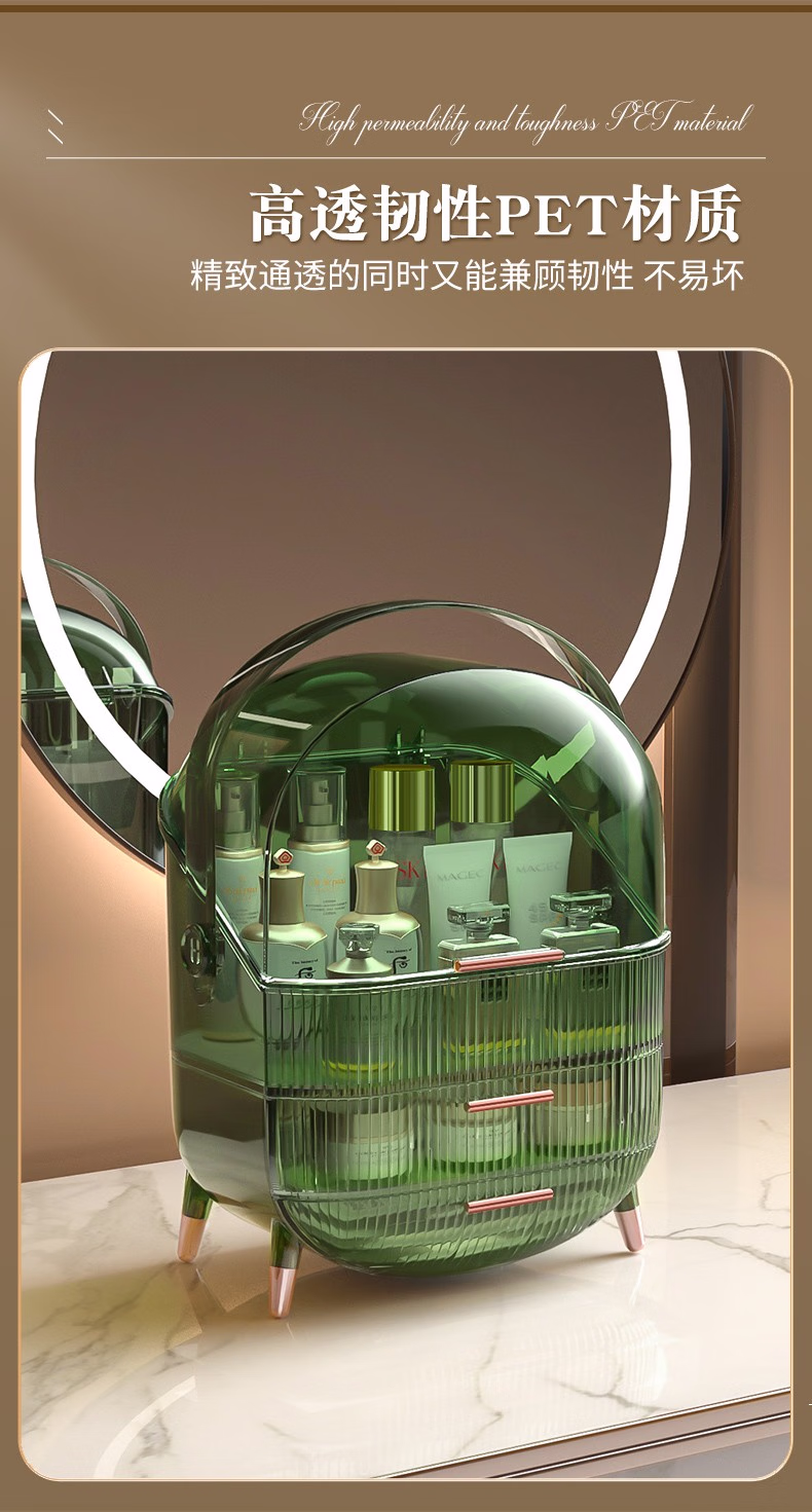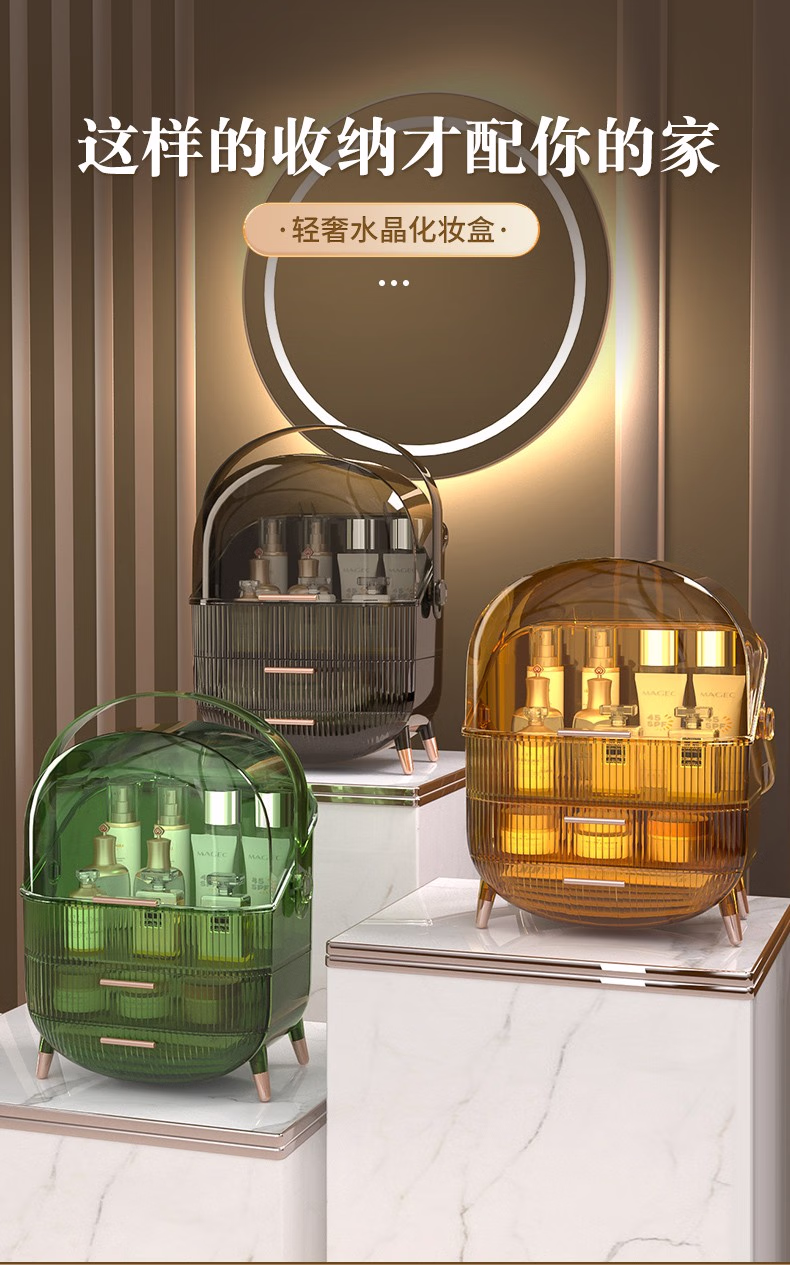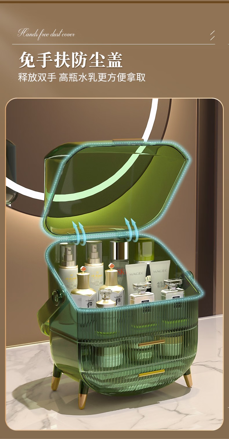 KAMAN轻奢化妆品收纳盒桌面防尘护肤品置物架子高级梳妆台化妆箱 轻奢新款【烟晶灰】防尘/可手提/大容量