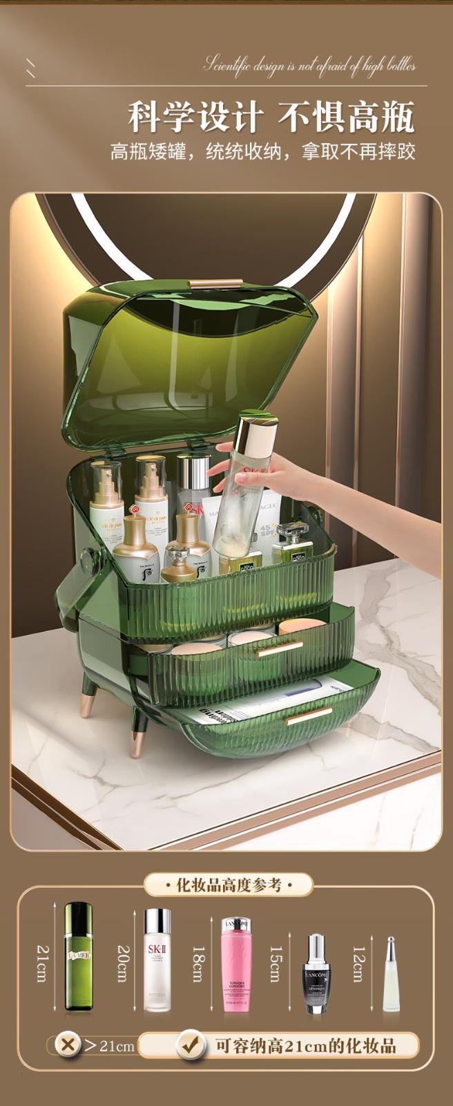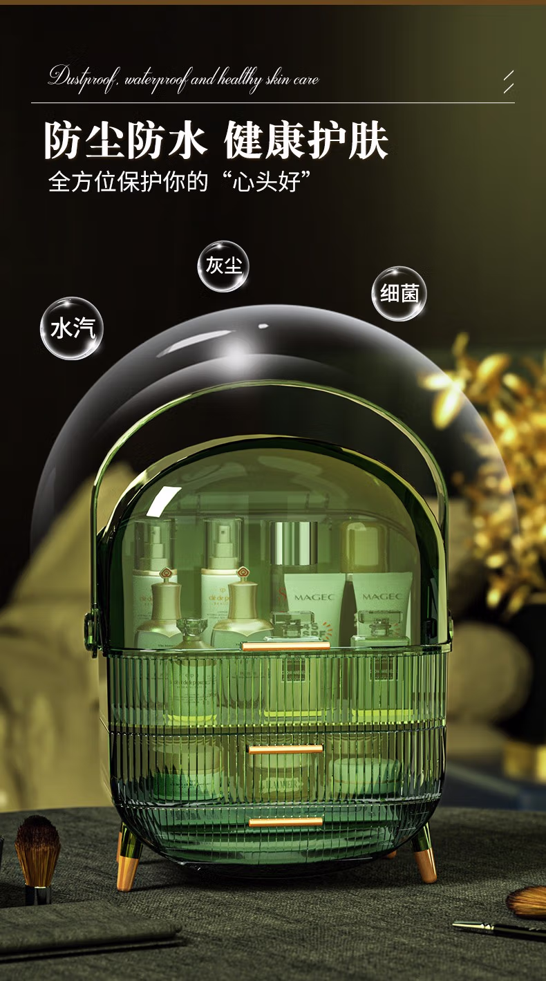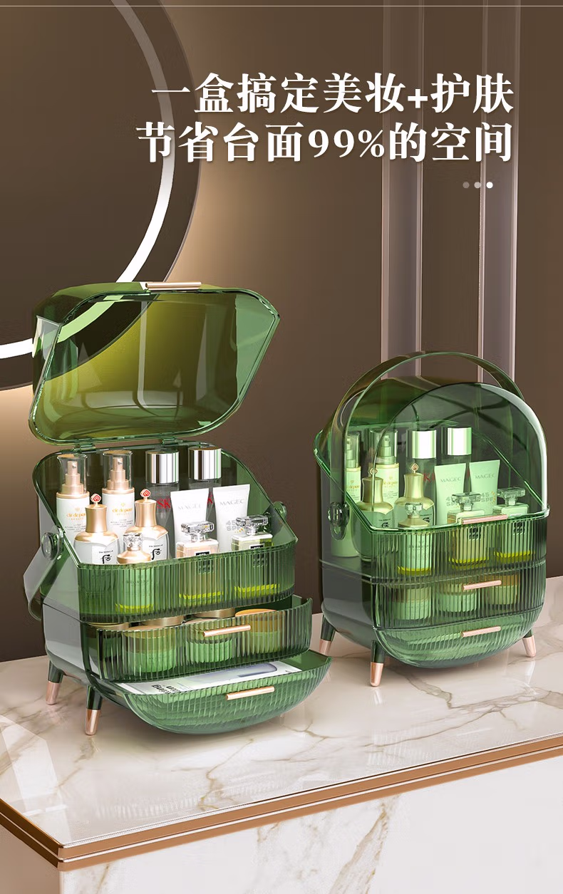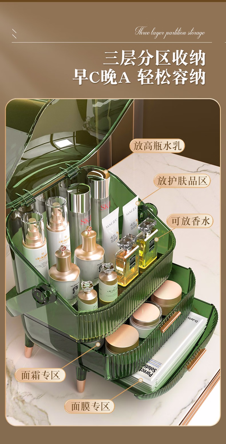 KAMAN轻奢化妆品收纳盒桌面防尘护肤品置物架子高级梳妆台化妆箱 轻奢新款【烟晶灰】防尘/可手提/大容量