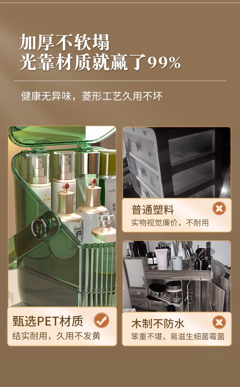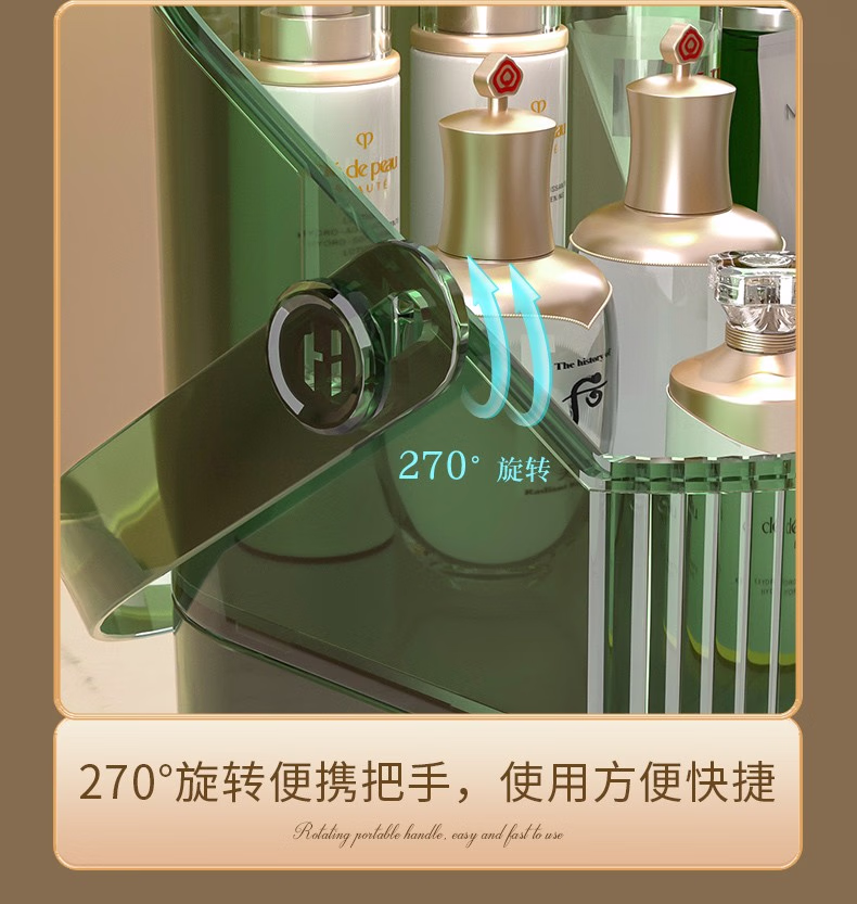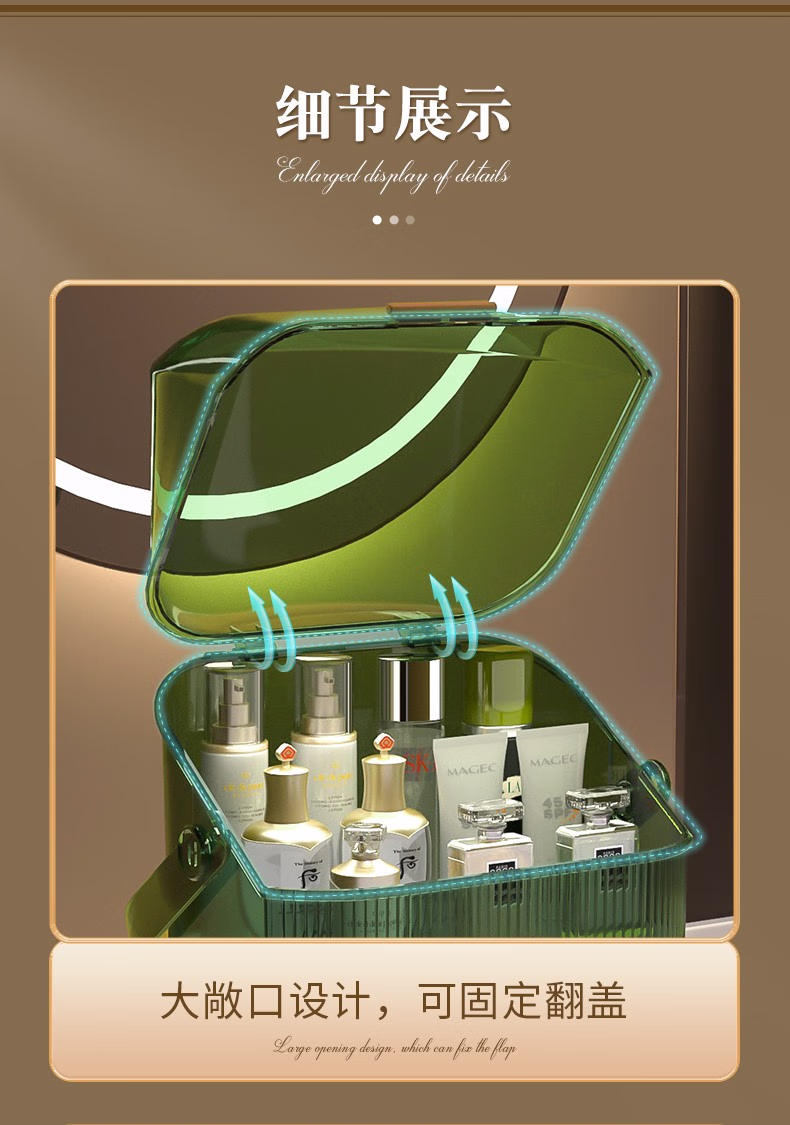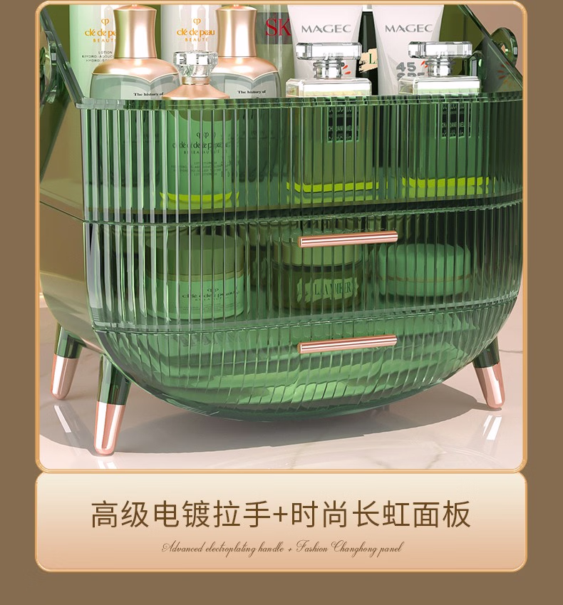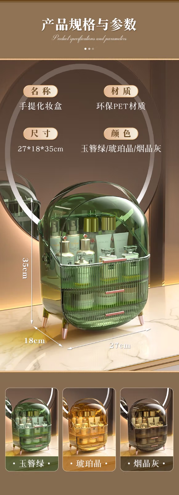 KAMAN轻奢化妆品收纳盒桌面防尘护肤品置物架子高级梳妆台化妆箱 轻奢新款【烟晶灰】防尘/可手提/大容量