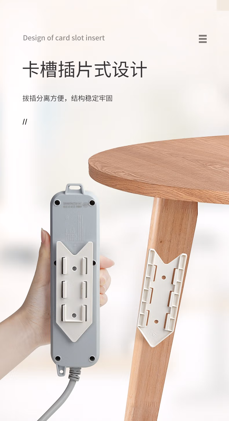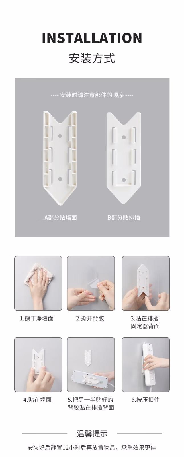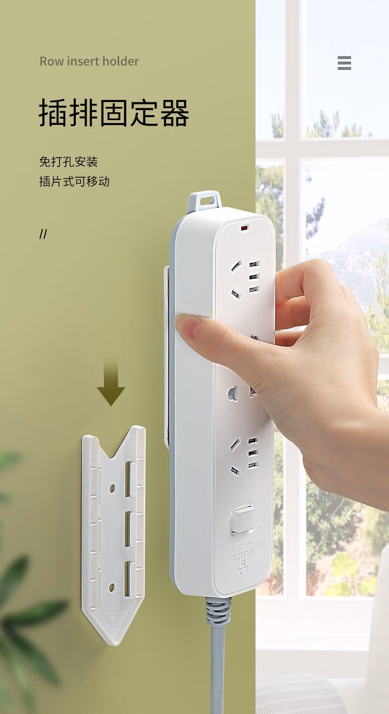 非非猫插排固定器神器 插线板插座路由器固定架 免打孔墙面粘贴强力无痕贴固定卡槽理线器收纳排插固定器 一个装(赠无痕贴)