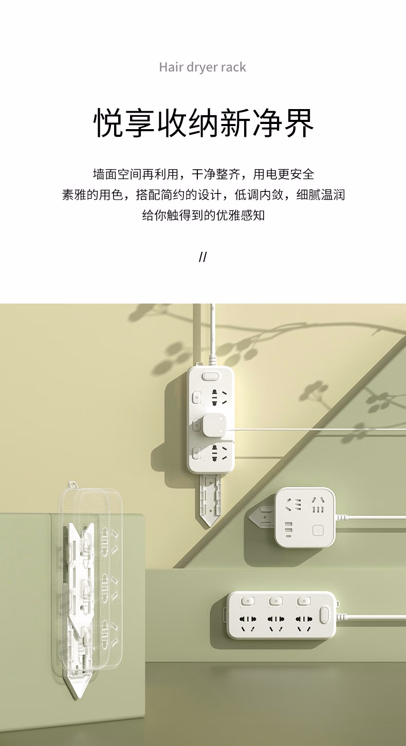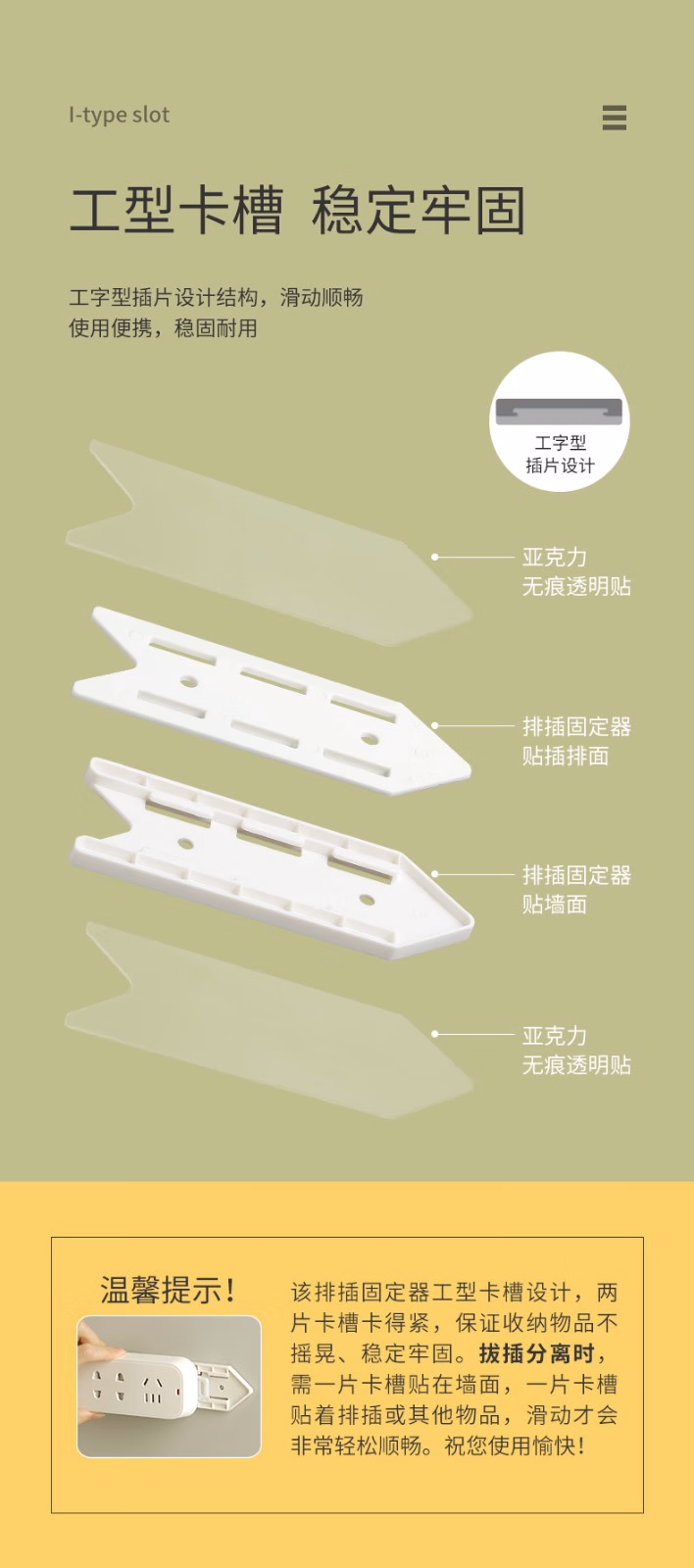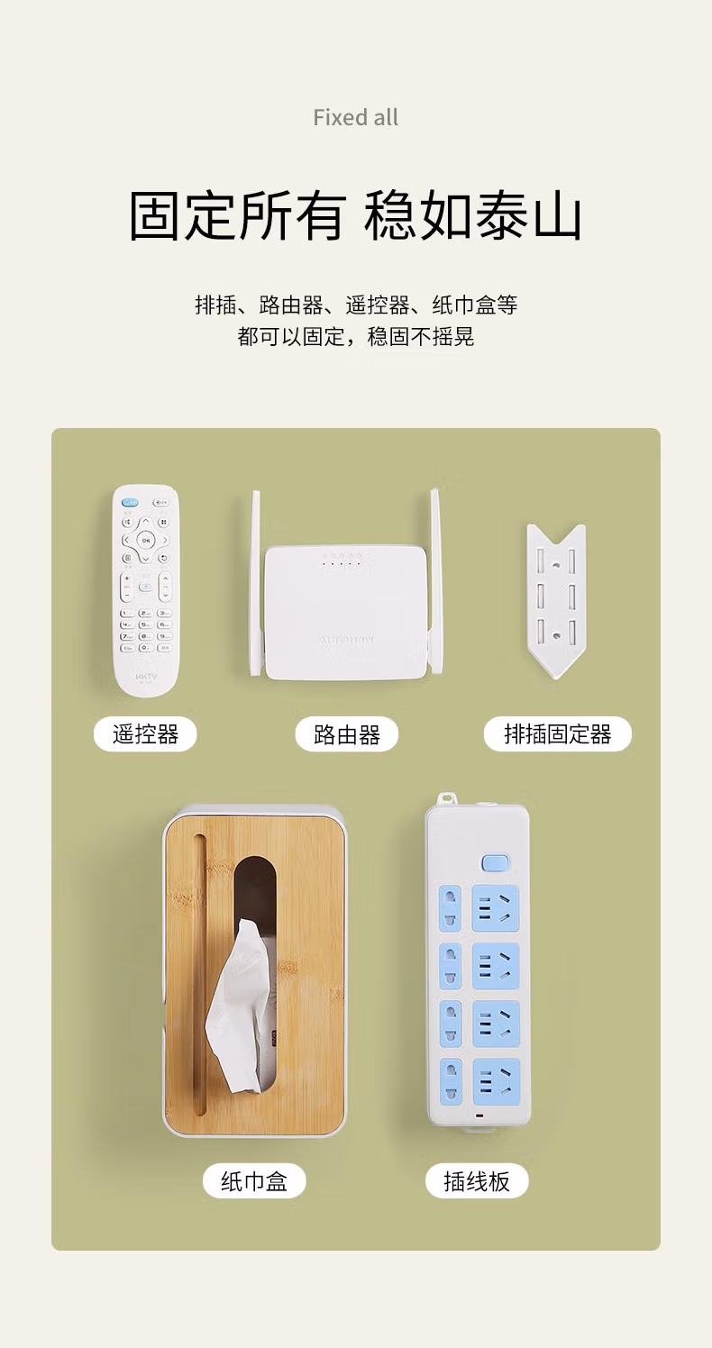 非非猫插排固定器神器 插线板插座路由器固定架 免打孔墙面粘贴强力无痕贴固定卡槽理线器收纳排插固定器 一个装(赠无痕贴)
