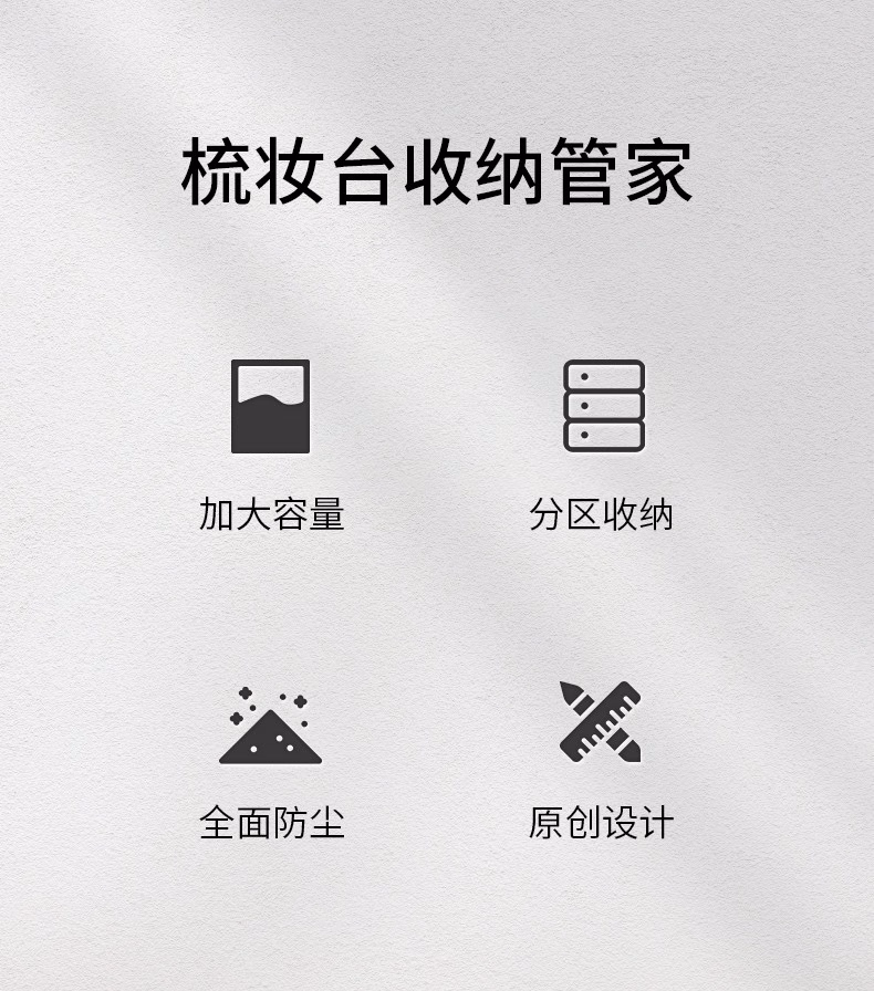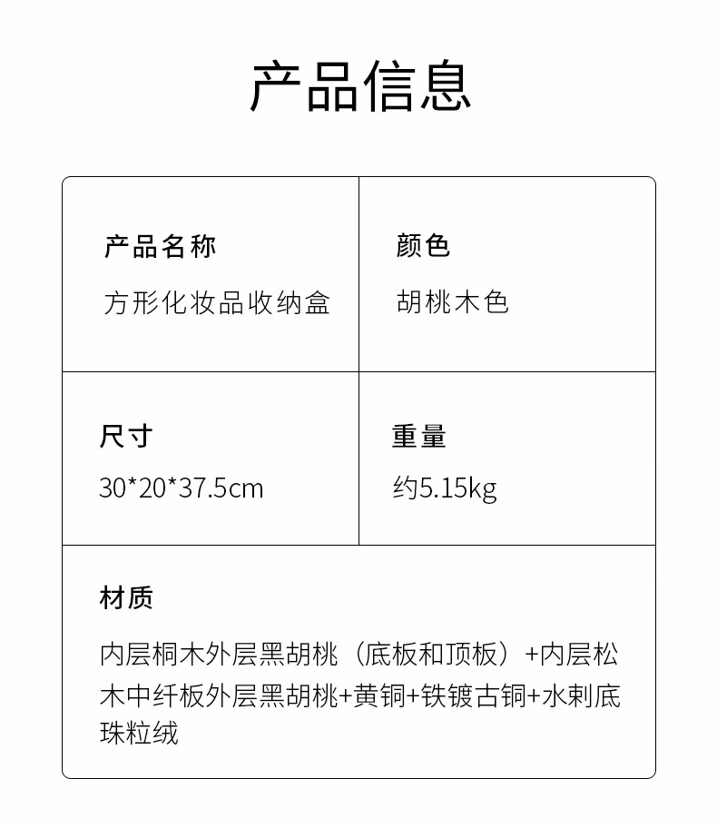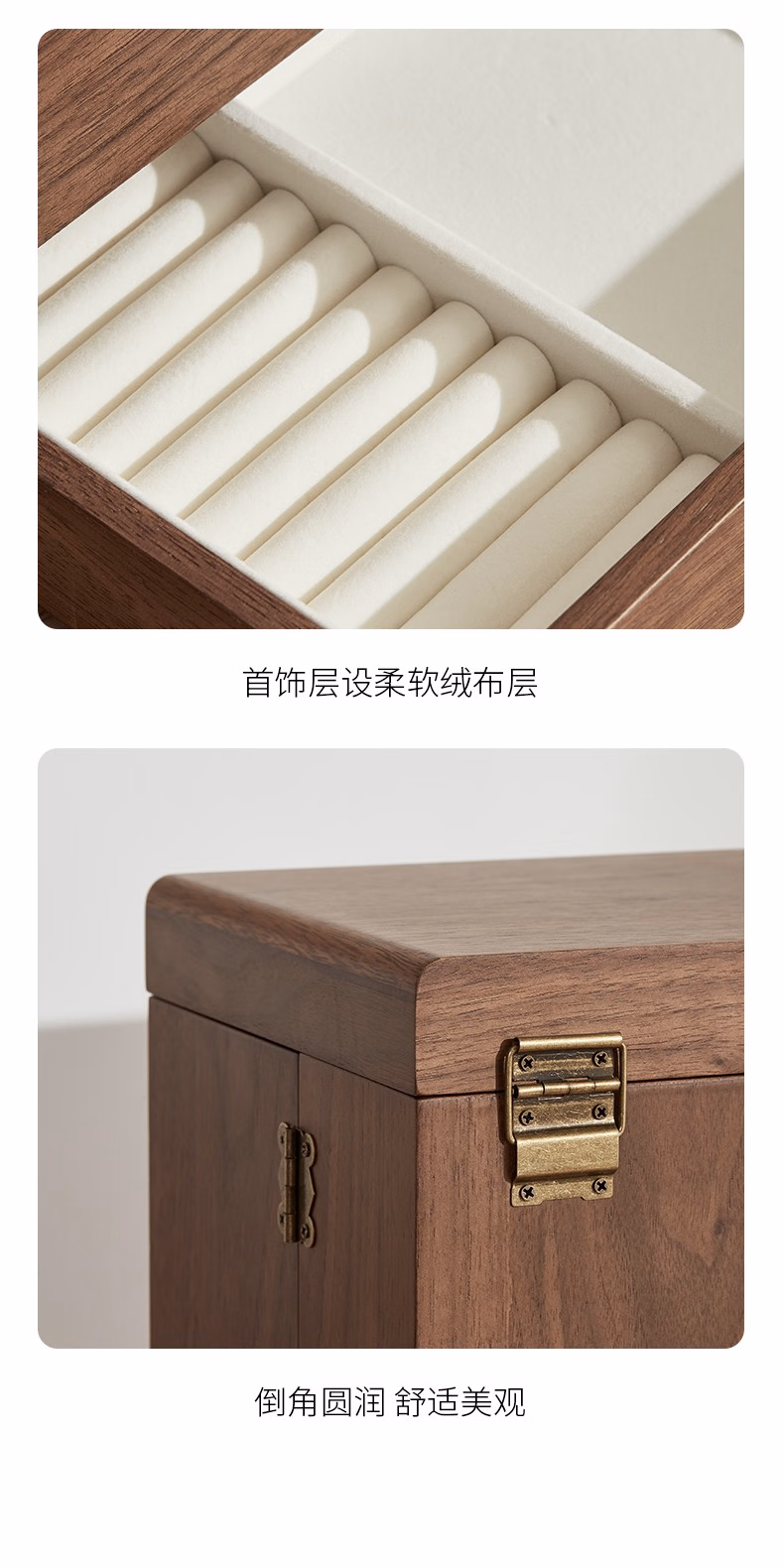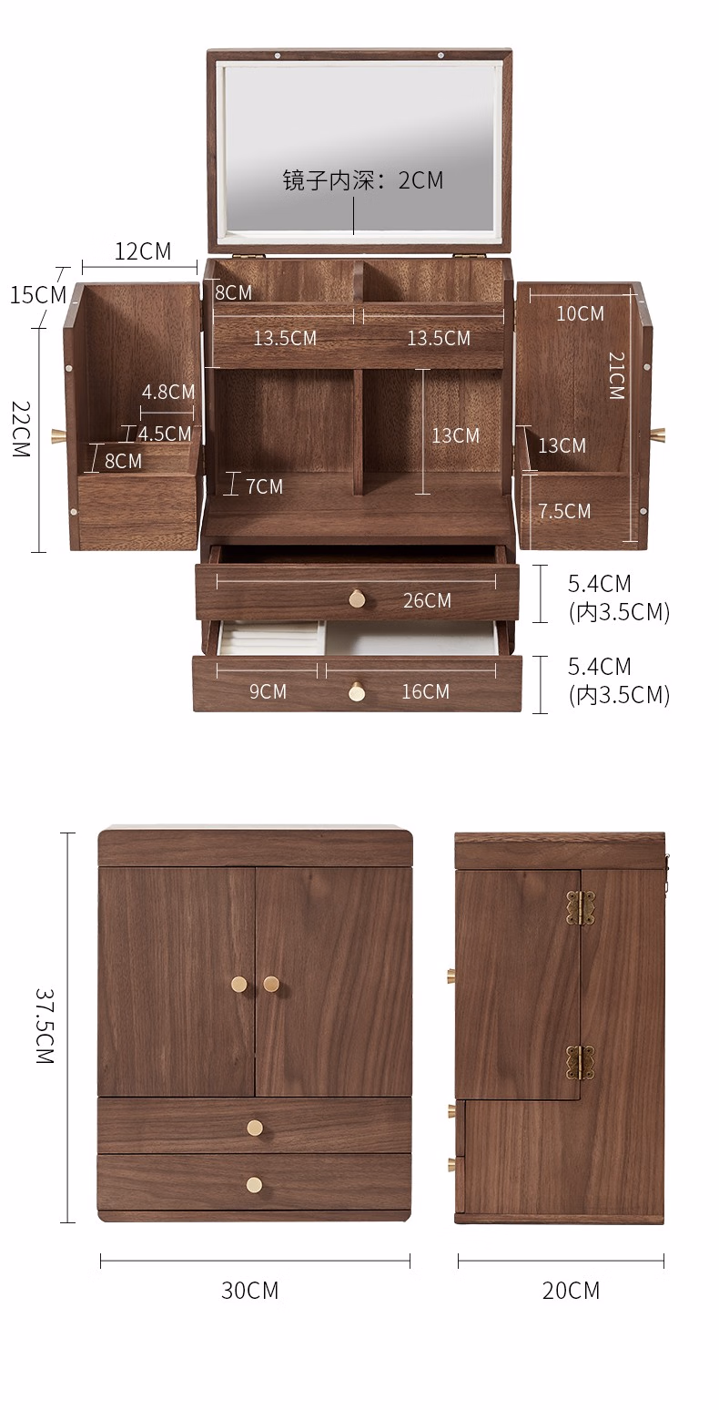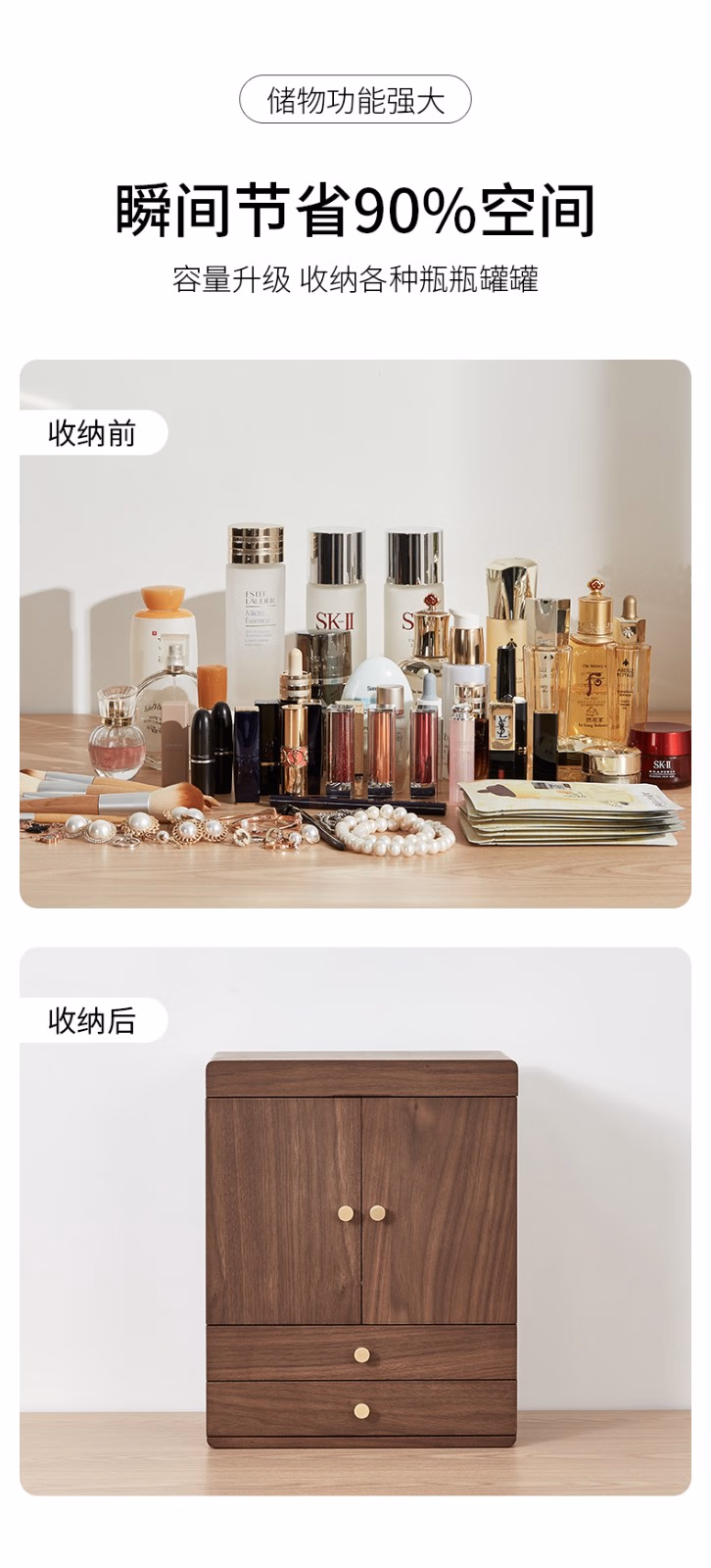 初心(CHOSIN)化妆品收纳盒带镜子生日礼物送女生桌面收纳护肤品口红妆台珠宝首饰盒化妆箱 方形化妆品收纳盒-胡桃木色