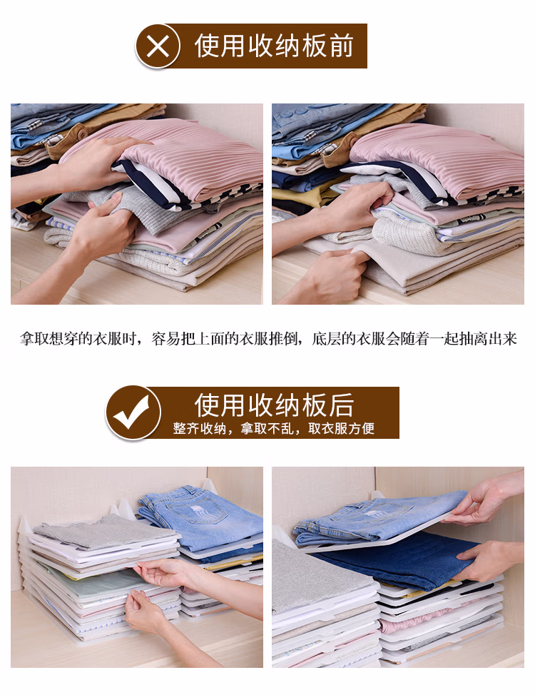 家の物语(KATEISTORY) 懒人叠衣板衣柜裤子收纳家用叠衣服神器T恤衬衫收纳整理架防皱 大号5个装