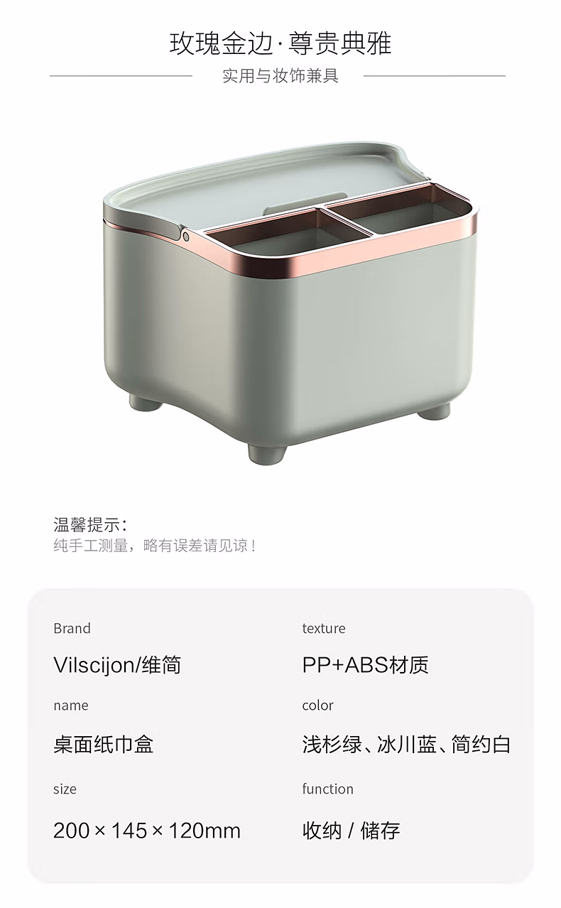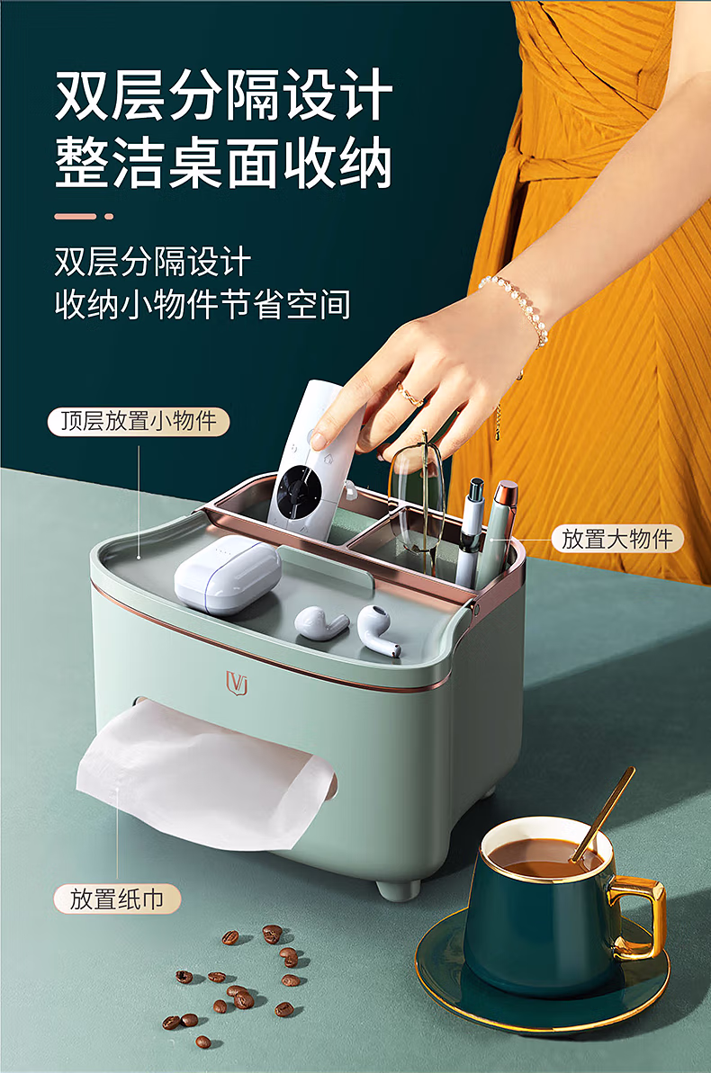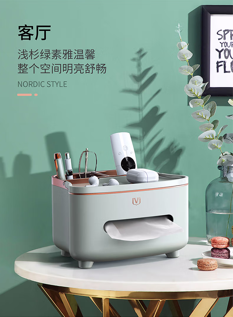 维简Vilscijon多功能纸巾盒抽纸盒客厅轻奢 纸抽盒卷纸盒卫生餐巾纸盒笔筒 桌面创意茶几遥控器收纳盒浅杉绿