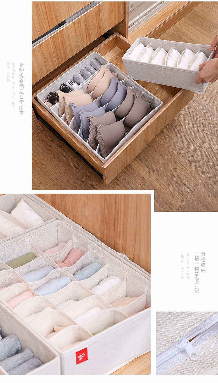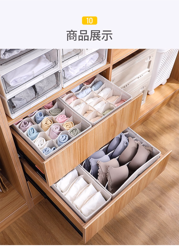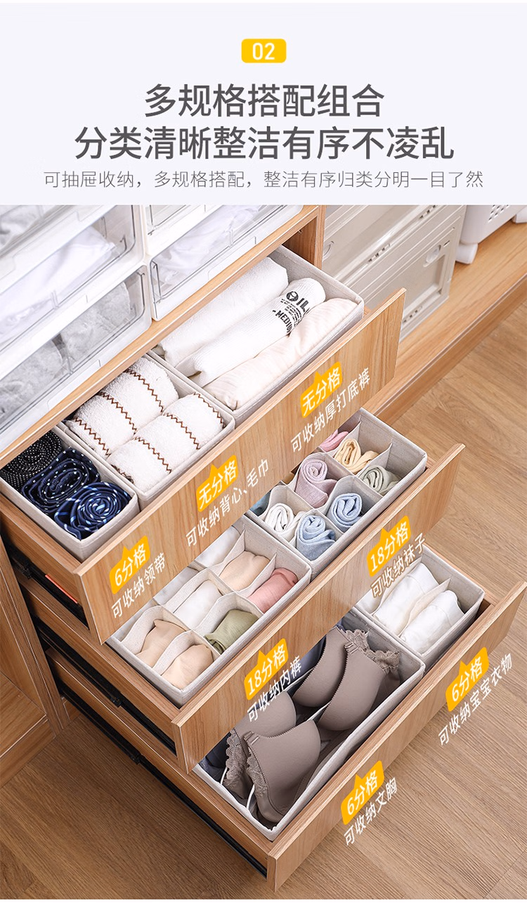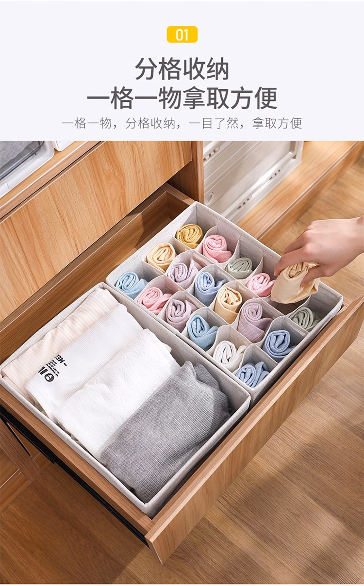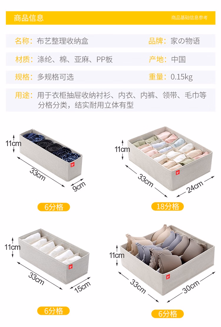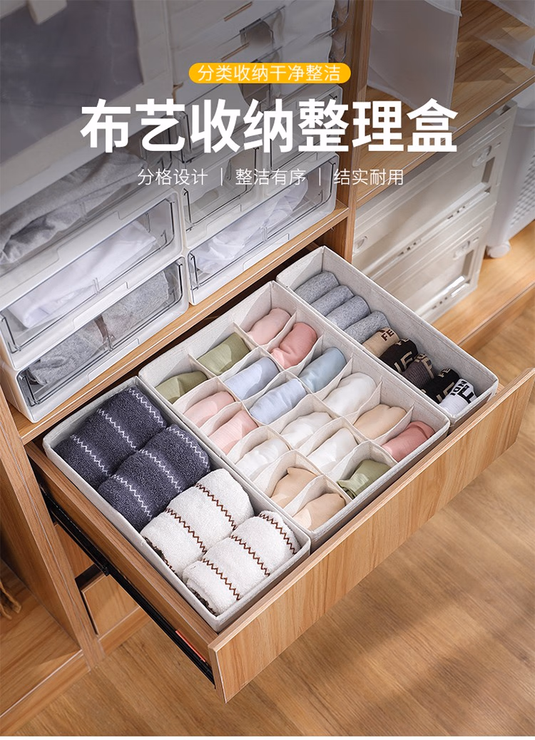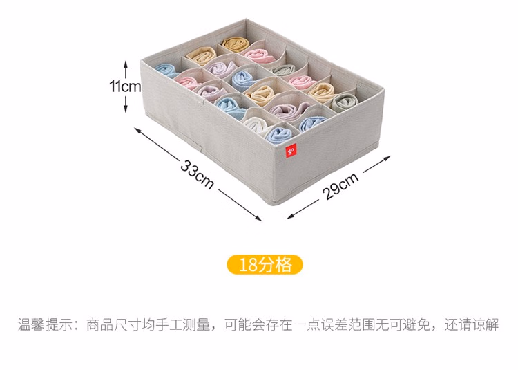 家の物语(KATEISTORY) 布艺抽屉内衣裤收纳盒家用袜子分格子放内衣内裤文胸衣柜分格整理神器 分隔收纳盒30cm-18分格