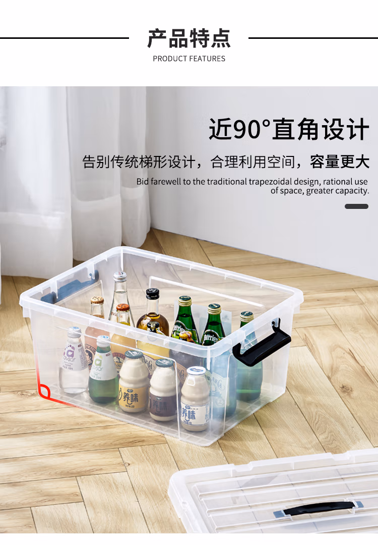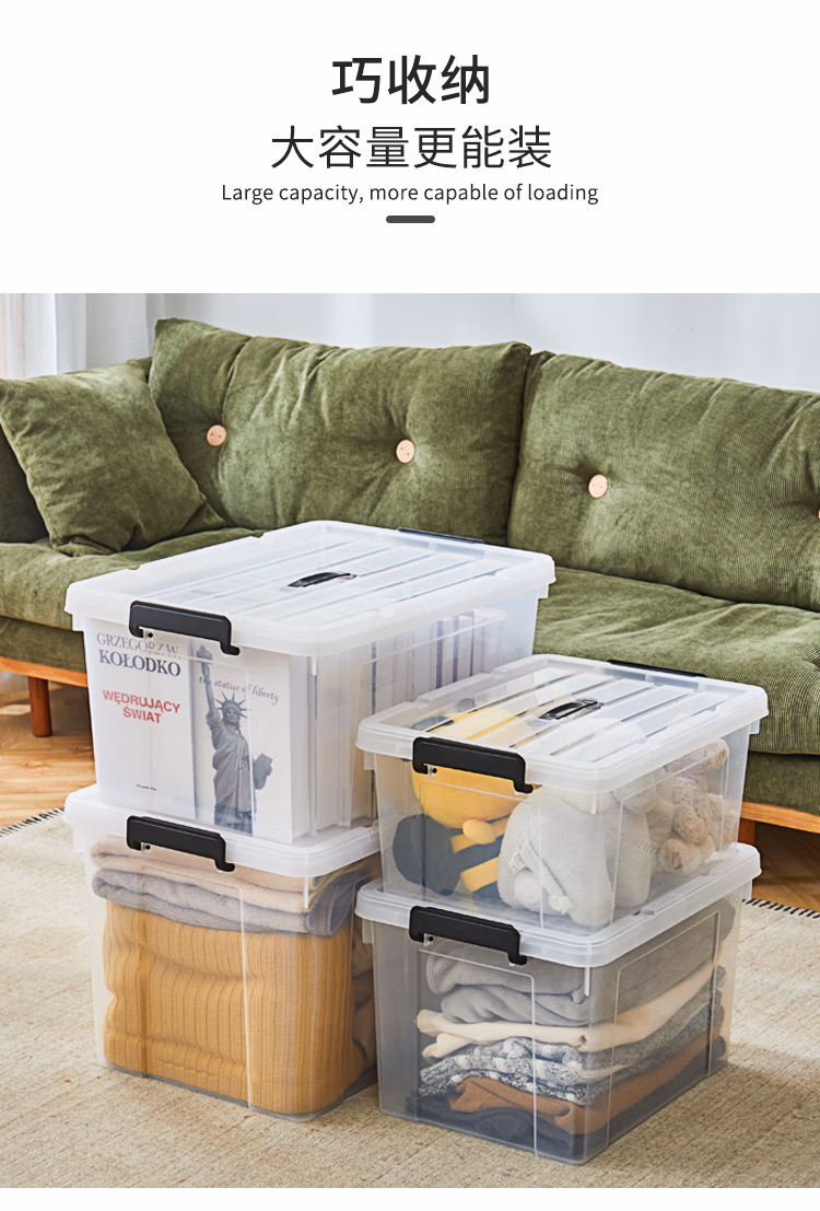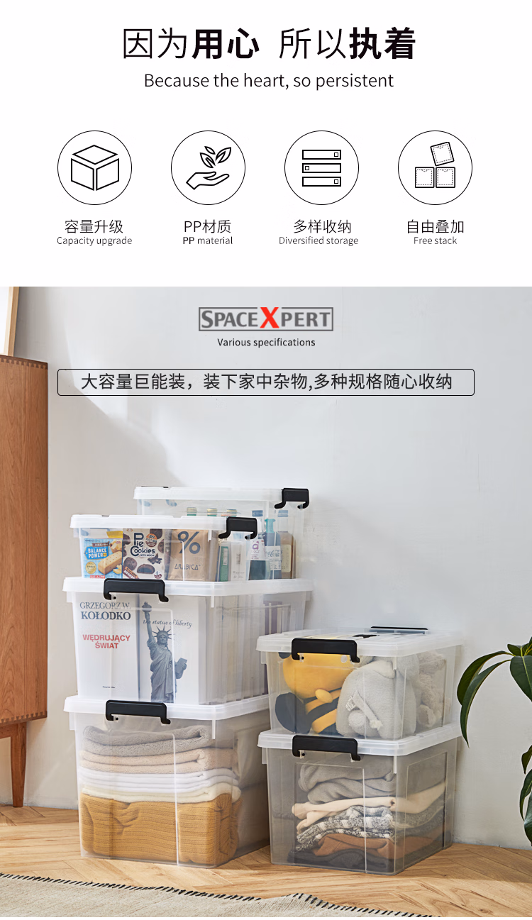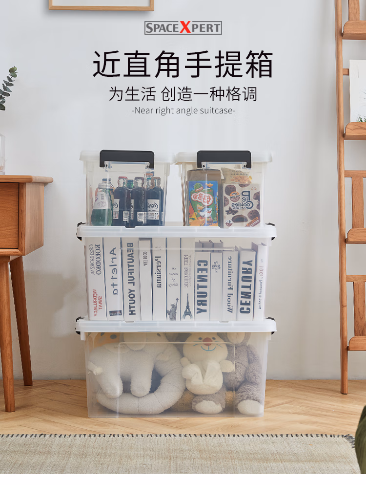 SPACEXPERT近直角高透手提塑料收纳箱 15L单只 加厚衣物口罩整理箱玩具储物箱 桌面化妆品首饰收纳箱