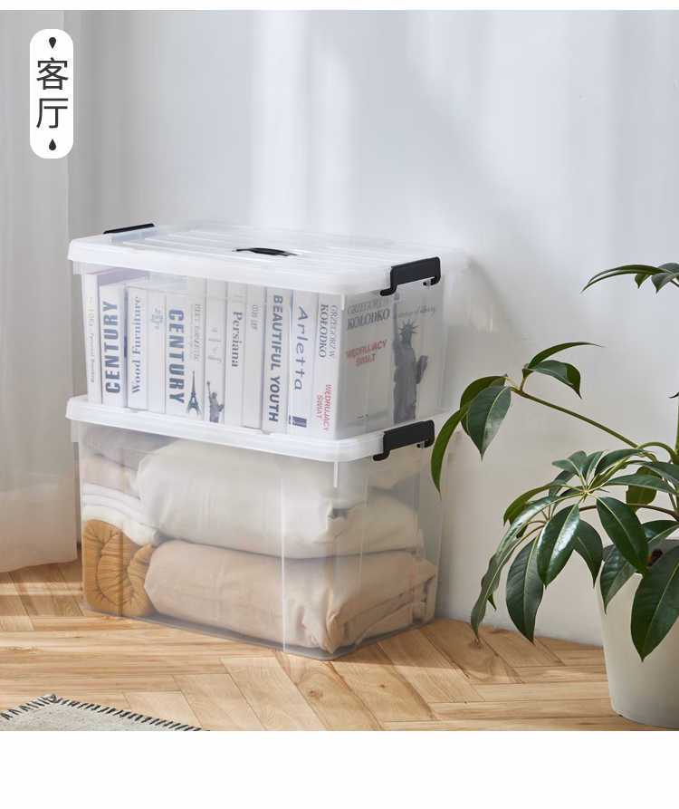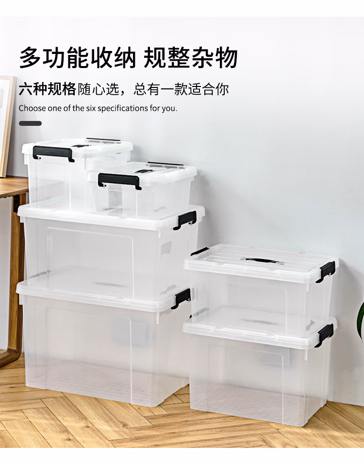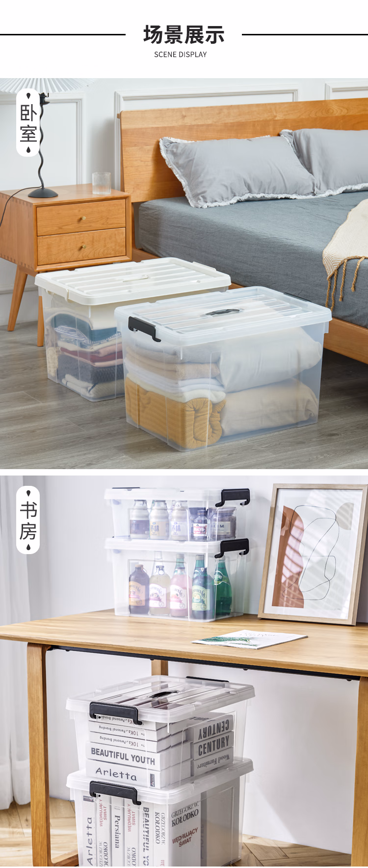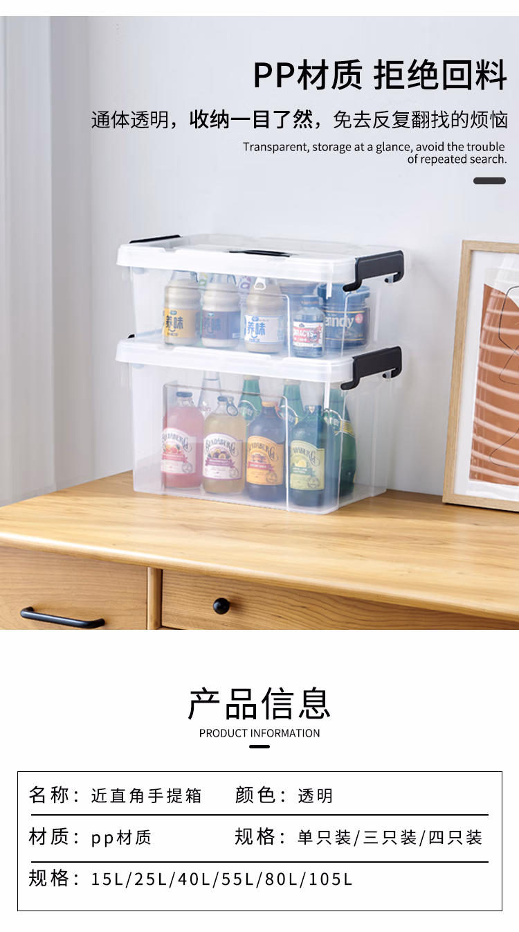 SPACEXPERT近直角高透手提塑料收纳箱 15L单只 加厚衣物口罩整理箱玩具储物箱 桌面化妆品首饰收纳箱