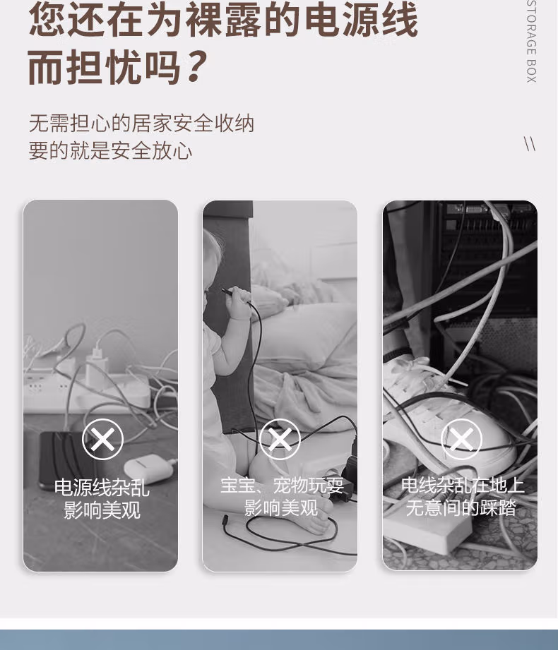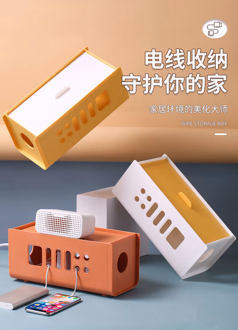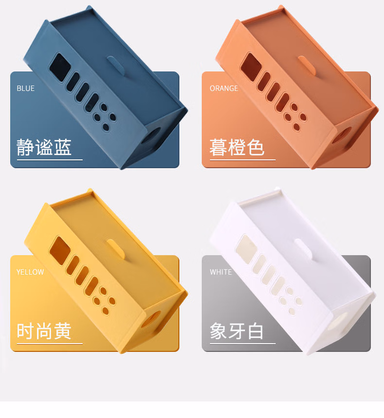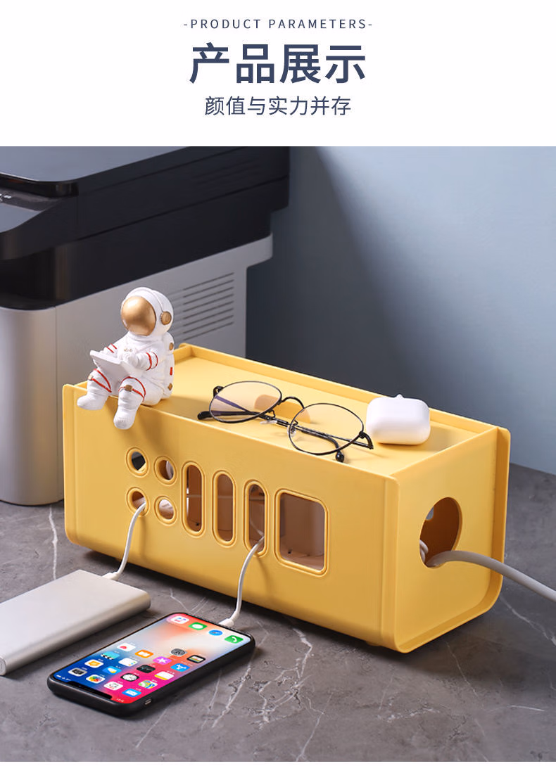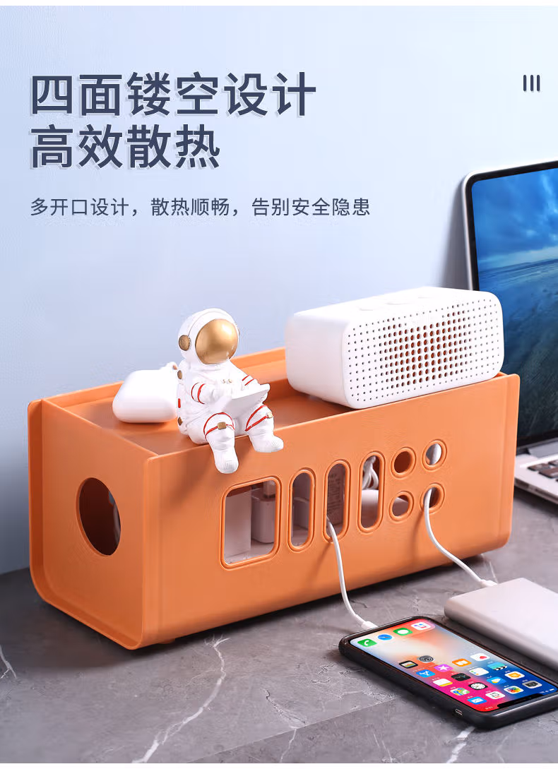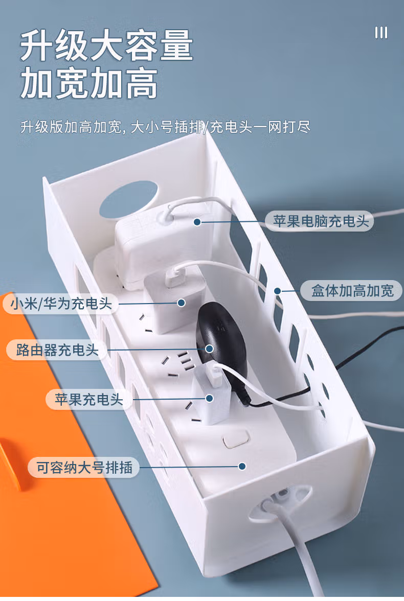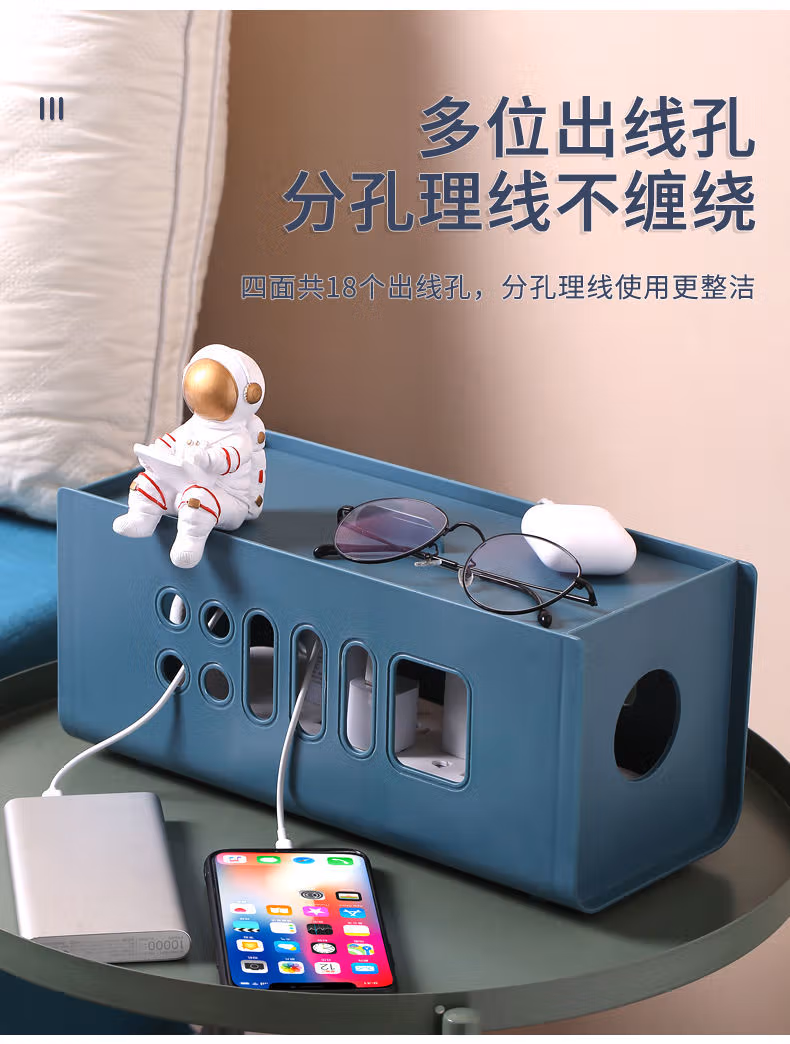 威安插排插线板收纳盒电线插座数据线排插分线盒集理线器桌面收纳神器 蓝色 蓝色防尘盖 800g 底部增高 加厚