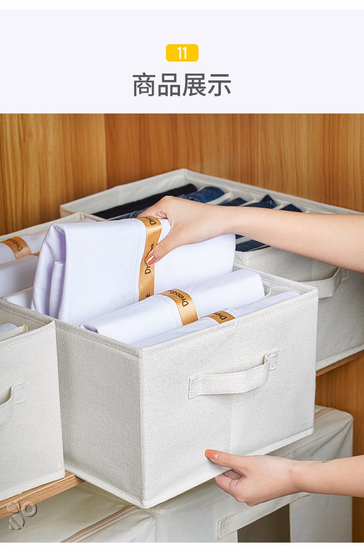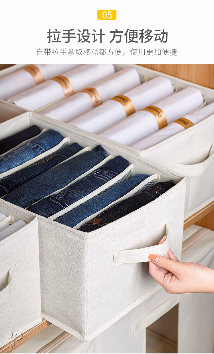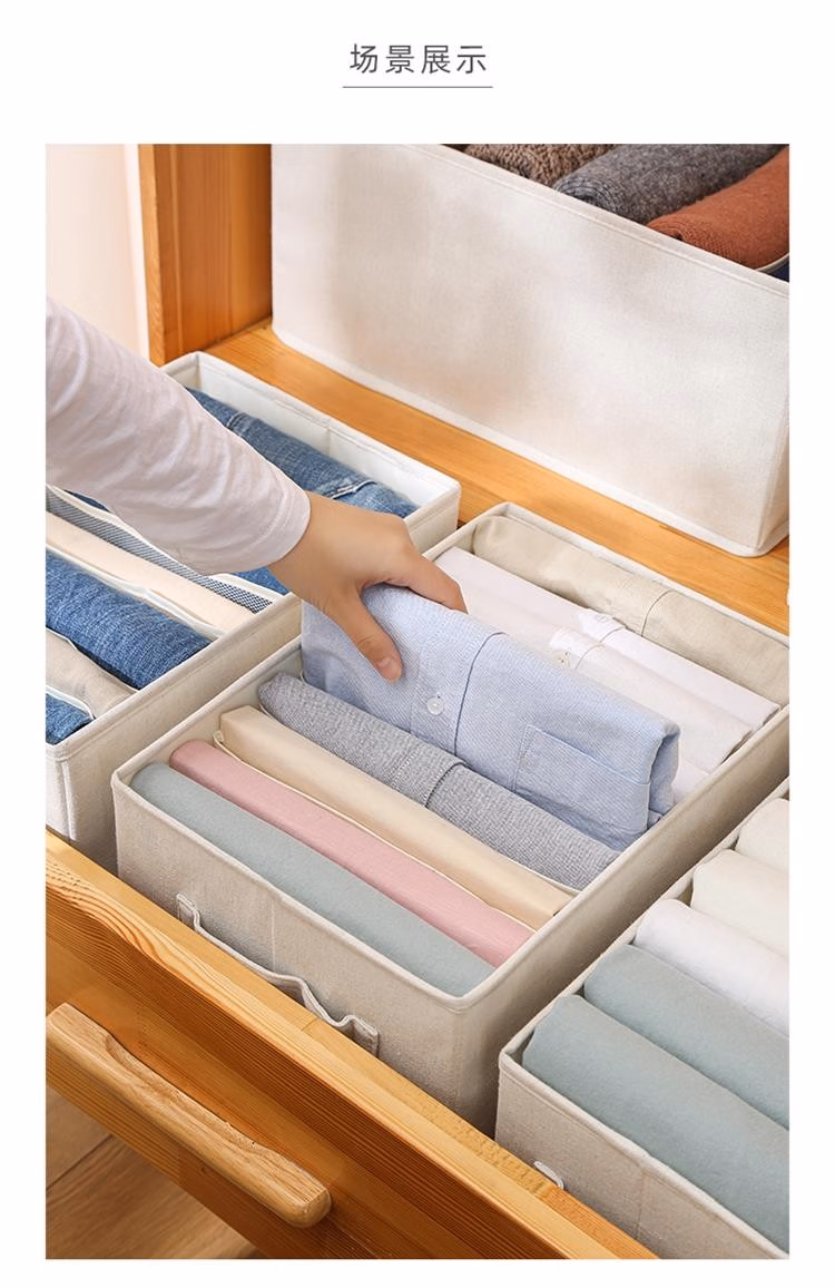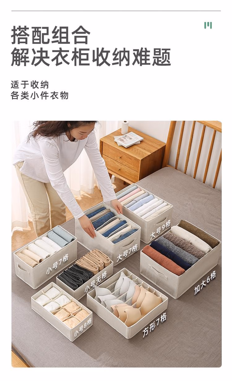 家の物语(KATEISTORY) 分隔收纳盒衣服裤子内衣布艺可折叠袜子文胸内裤整理盒无纺布抽屉储物 衣服分格收纳盒 加大号三个装(6分格)