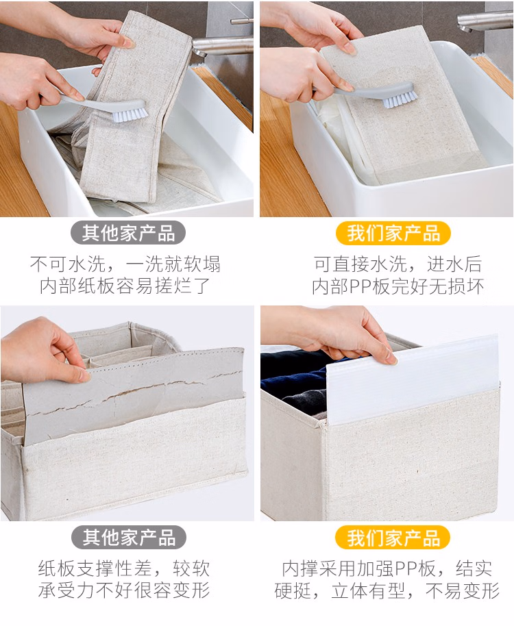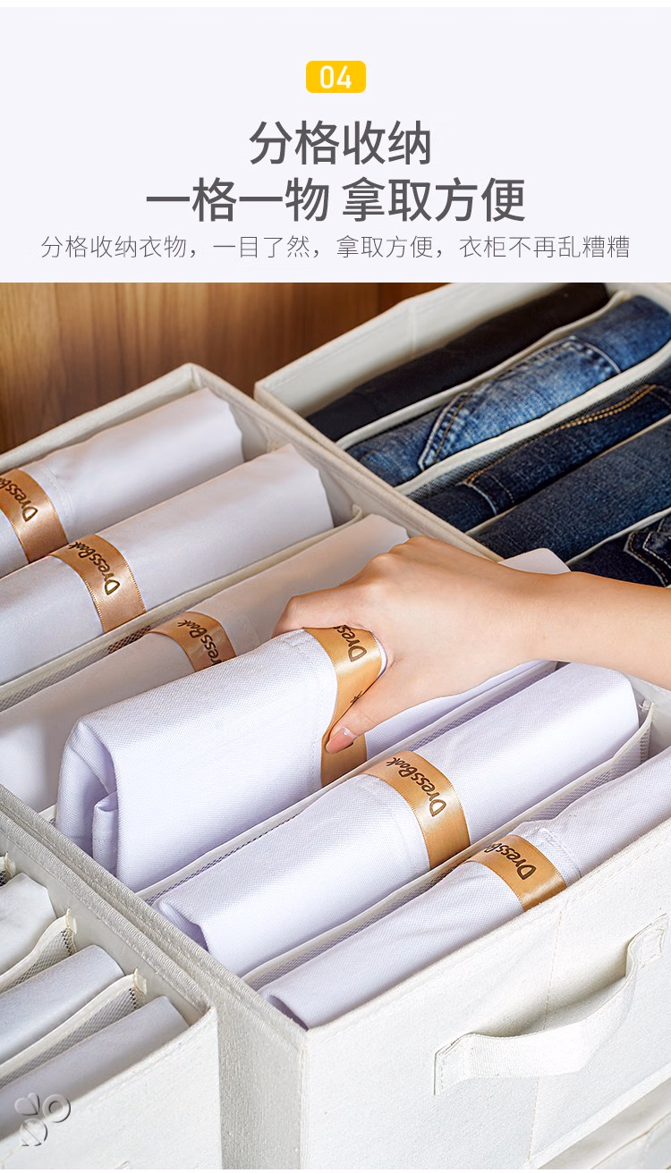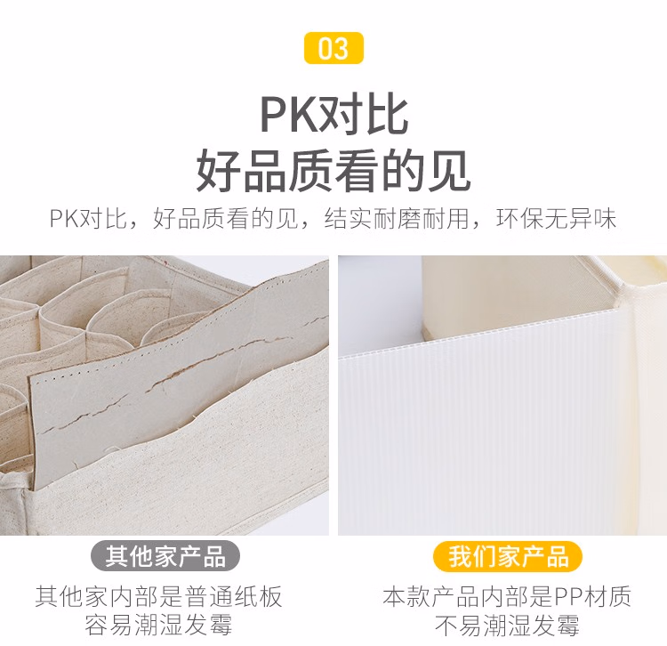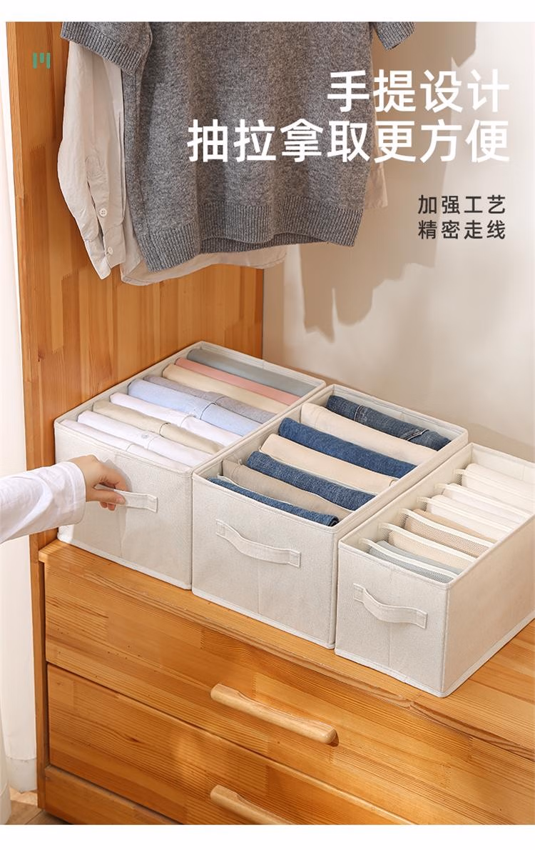 家の物语(KATEISTORY) 分隔收纳盒衣服裤子内衣布艺可折叠袜子文胸内裤整理盒无纺布抽屉储物 衣服分格收纳盒 加大号三个装(6分格)