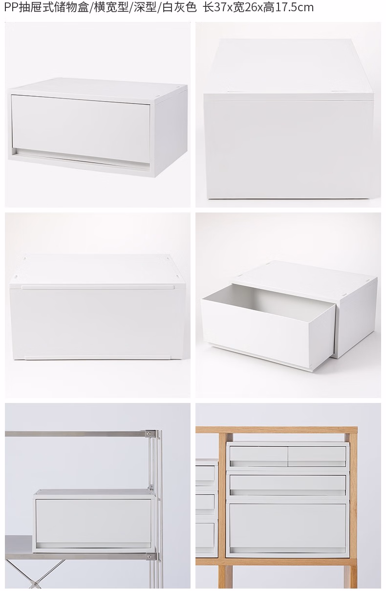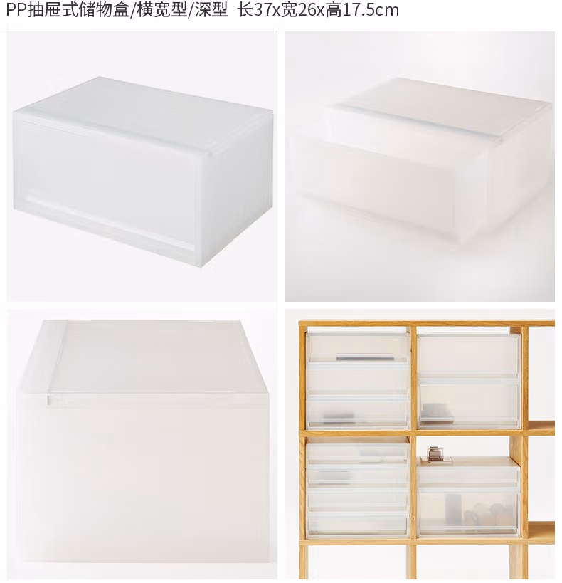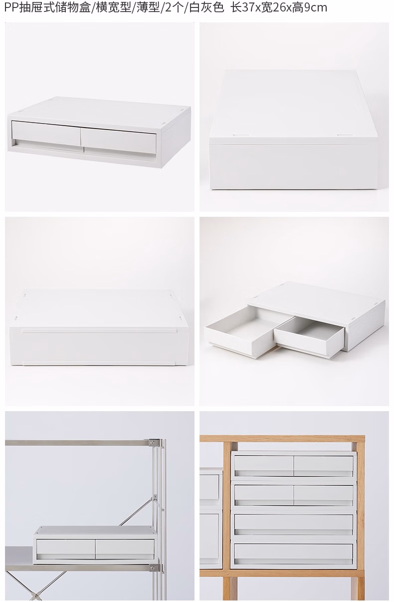 无印良品MUJI 聚丙烯抽屉式储物盒 B7S7032 薄型/2层 长26*宽37*高16.5cm