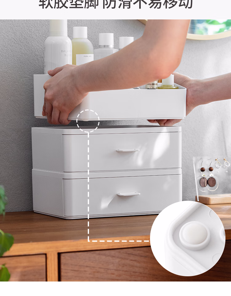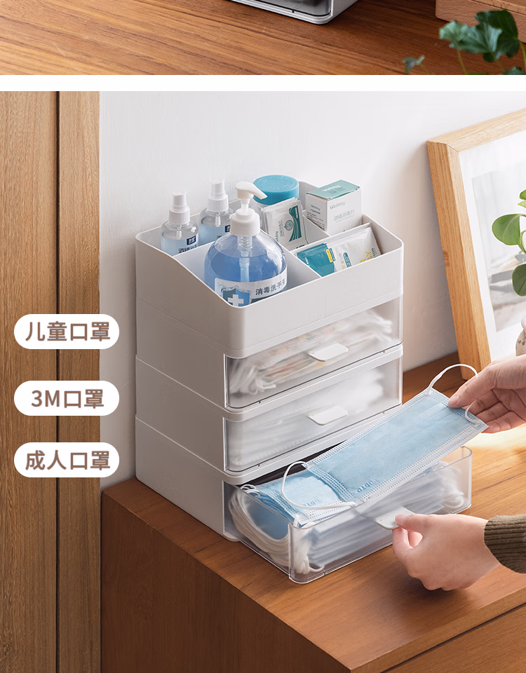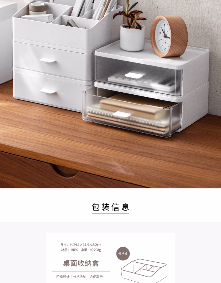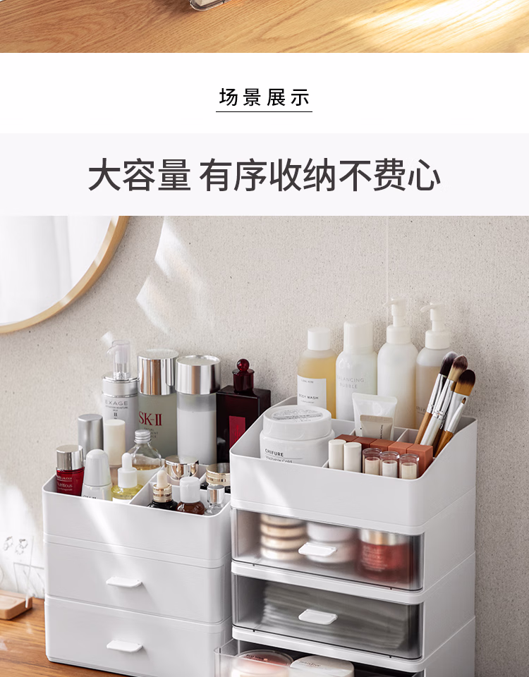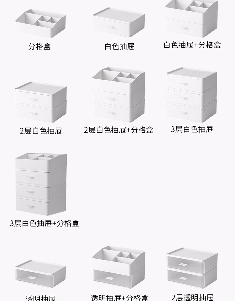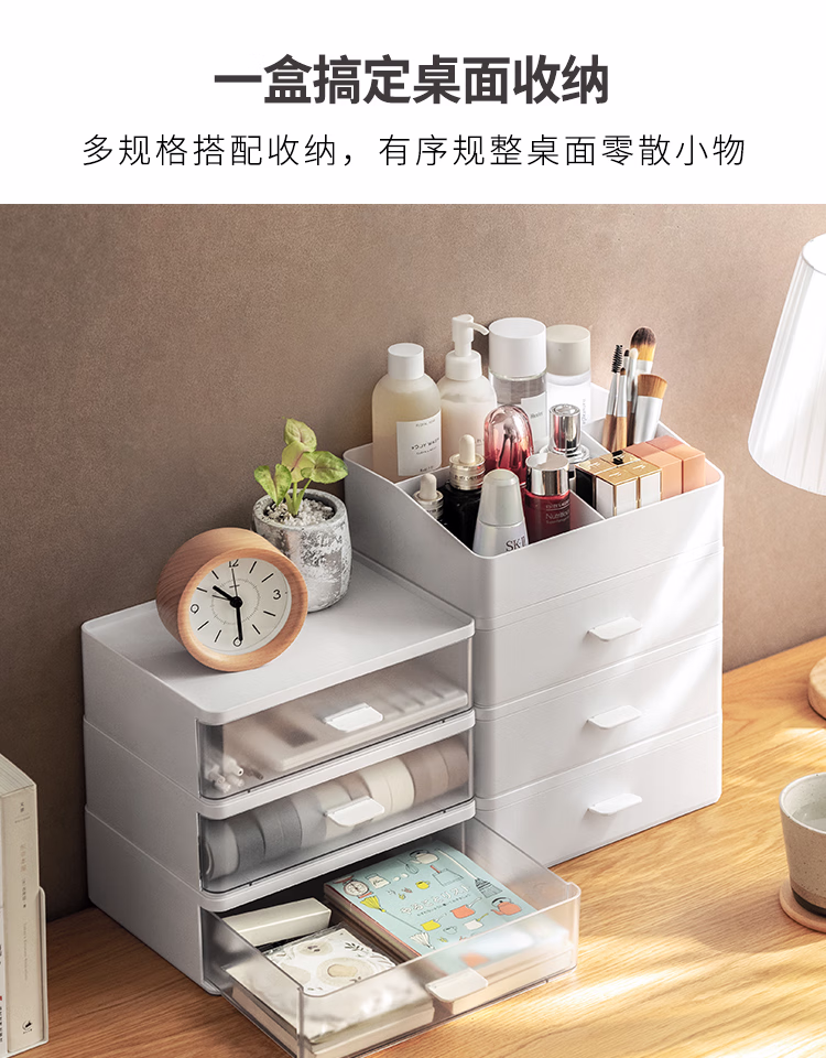 懒角落桌面收纳盒化妆品收纳盒抽屉式杂物口罩收纳盒口红首饰收纳盒可叠加防尘办公室储物盒 单个透明抽屉