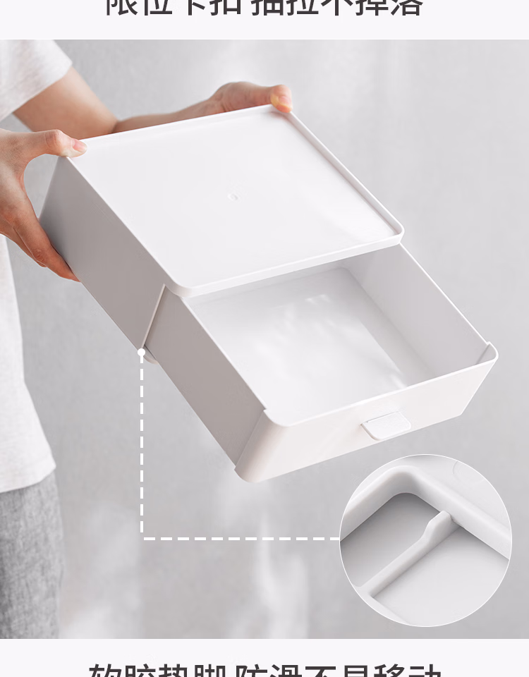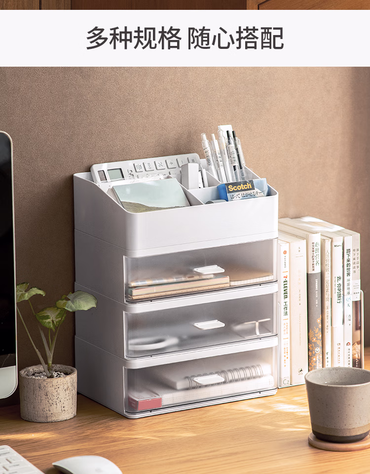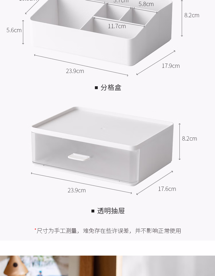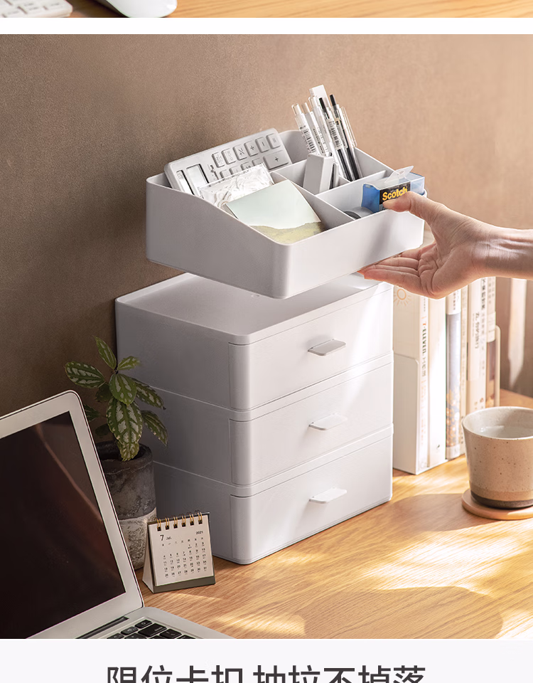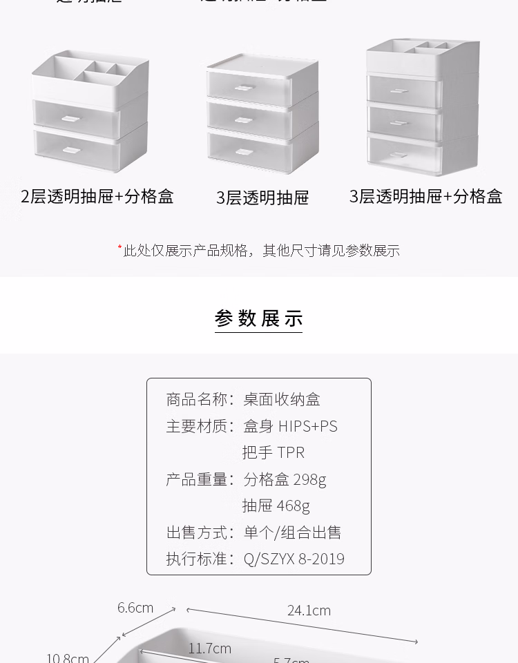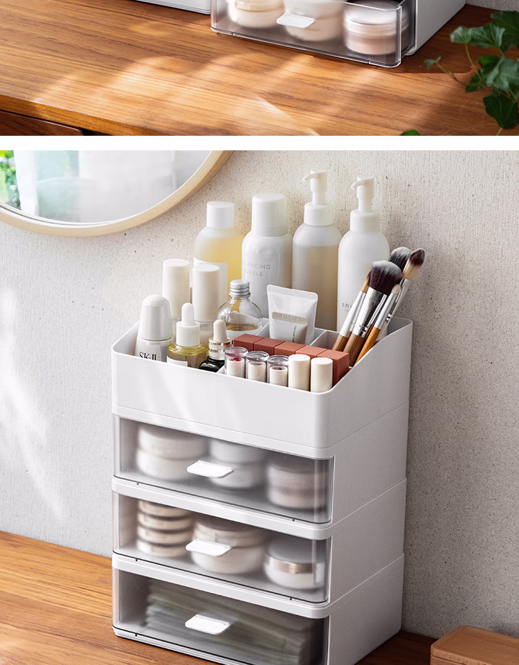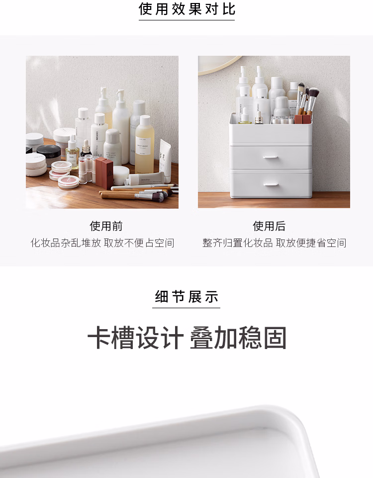 懒角落桌面收纳盒化妆品收纳盒抽屉式杂物口罩收纳盒口红首饰收纳盒可叠加防尘办公室储物盒 单个透明抽屉