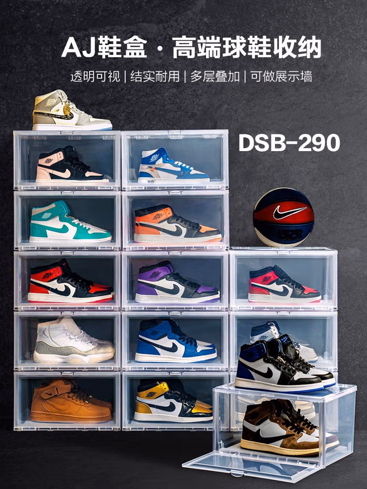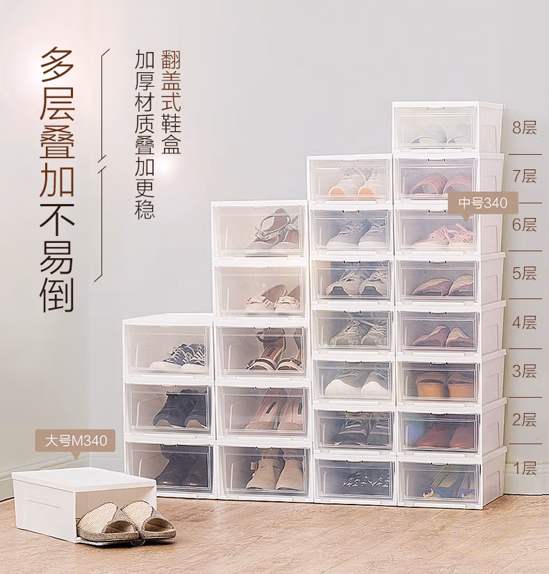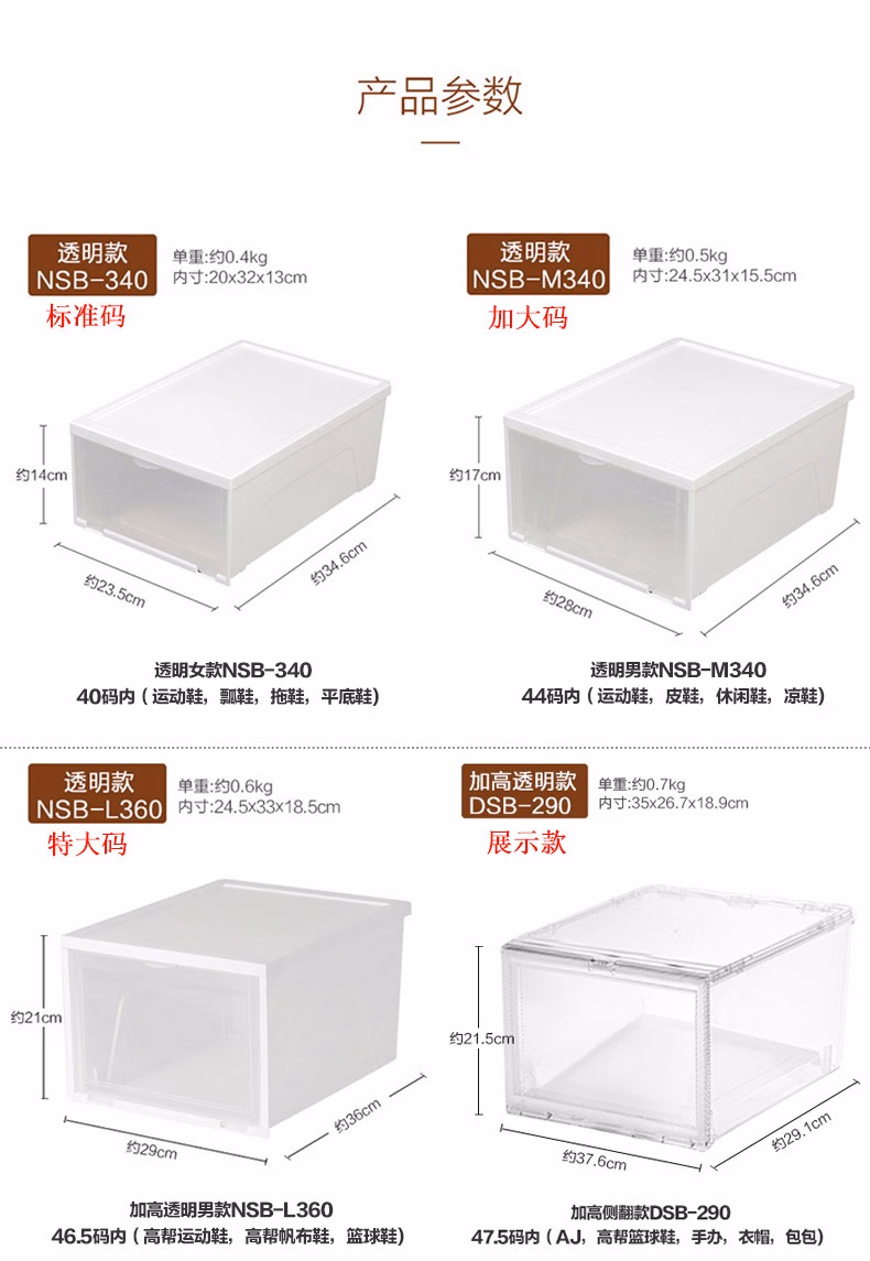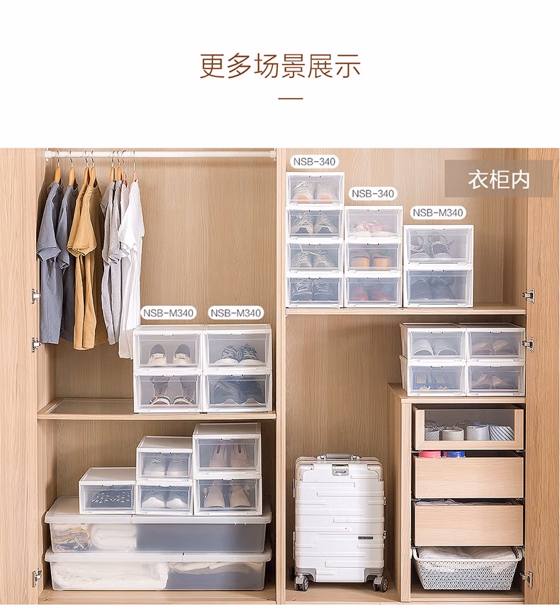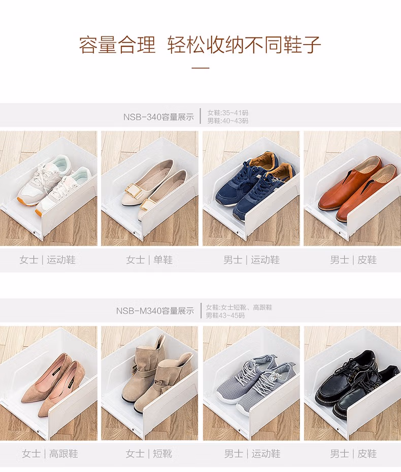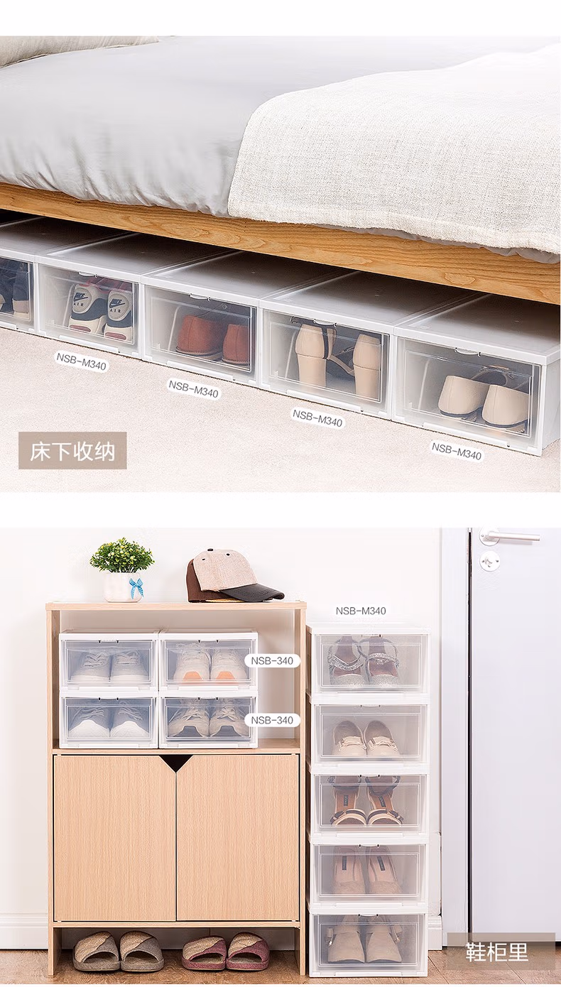 爱丽思IRIS透明鞋盒塑料收纳盒前开式储物盒AJ鞋柜加大加厚收纳箱防尘防潮可叠加标准码6个装NSB-340