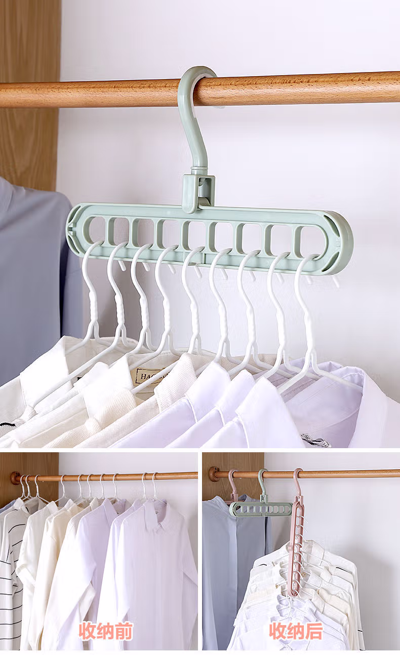 【5个装】多功能衣架家用学生收纳器衣服挂钩魔术整理架折叠九孔架子宿舍挂衣服裤子架子衣柜阳台使用颜色随机 五个*划算【80%客户选择购买】