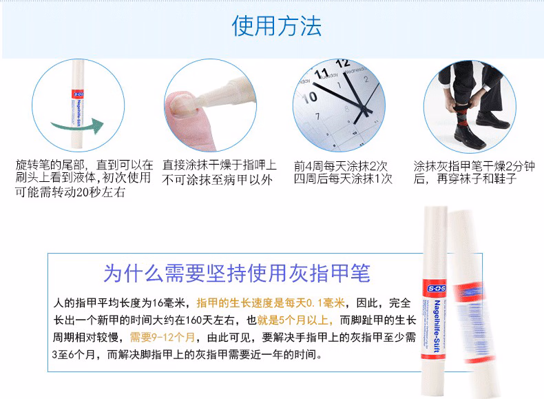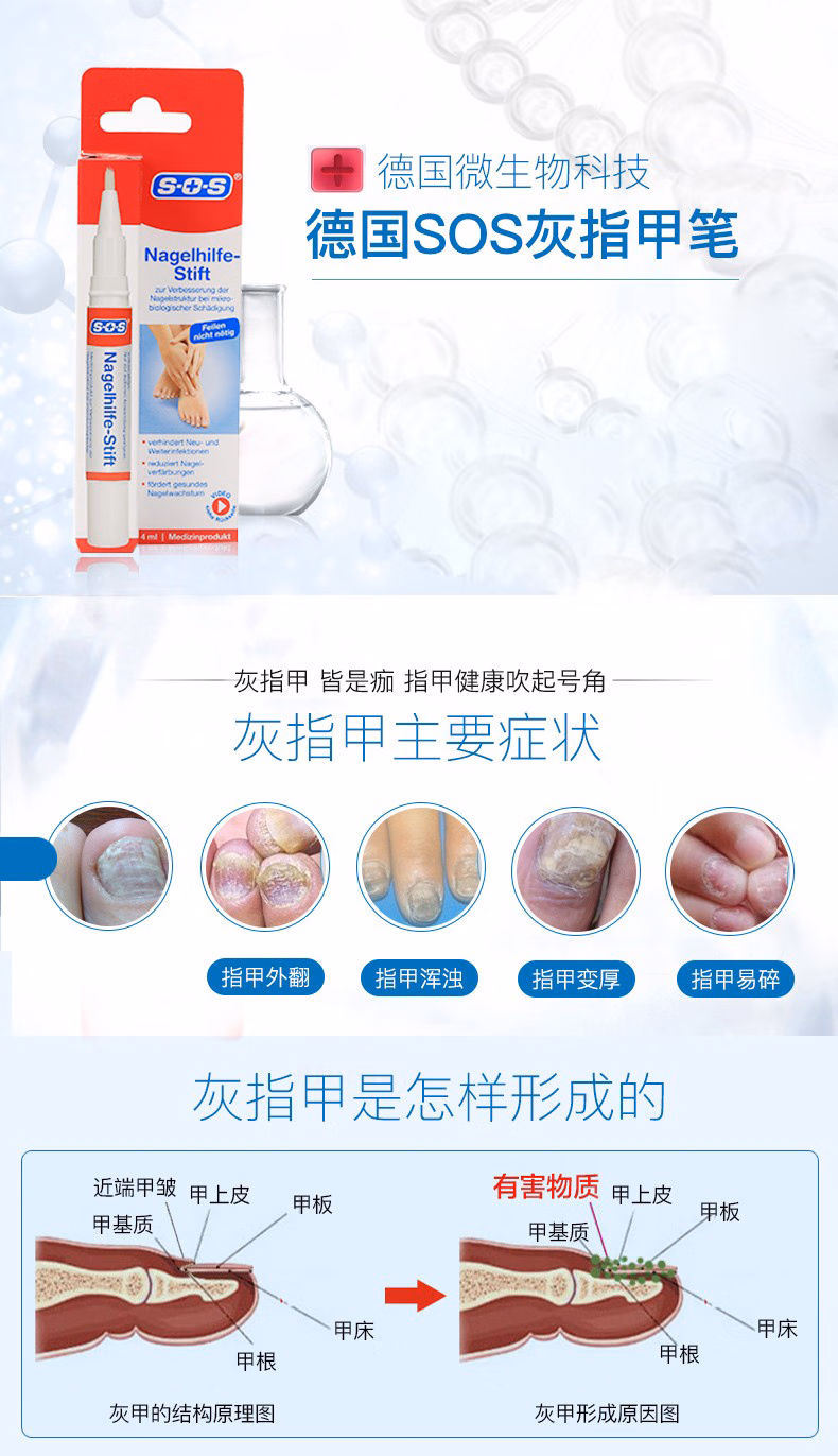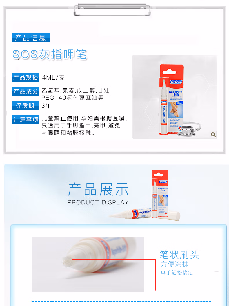 SOS原装灰指甲笔4ml灰指甲药笔抑菌液软甲膏去除增厚灰甲外用1支装