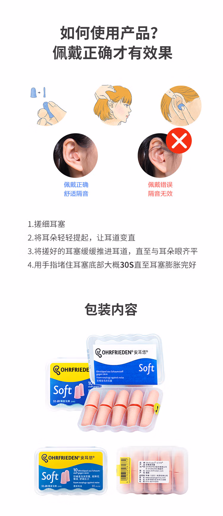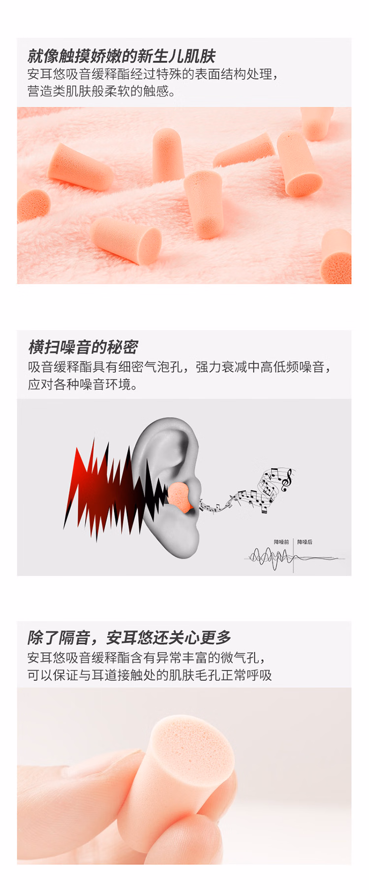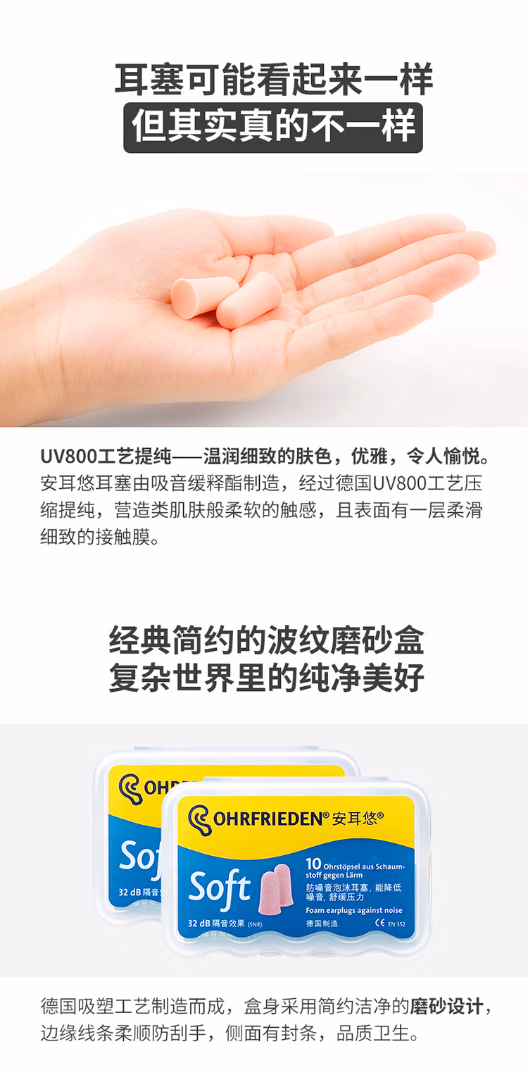 安耳悠隔音耳塞 男士女士专用防噪音睡眠耳塞 防呼噜声睡觉工作学习用入耳式 原装soft 2副装