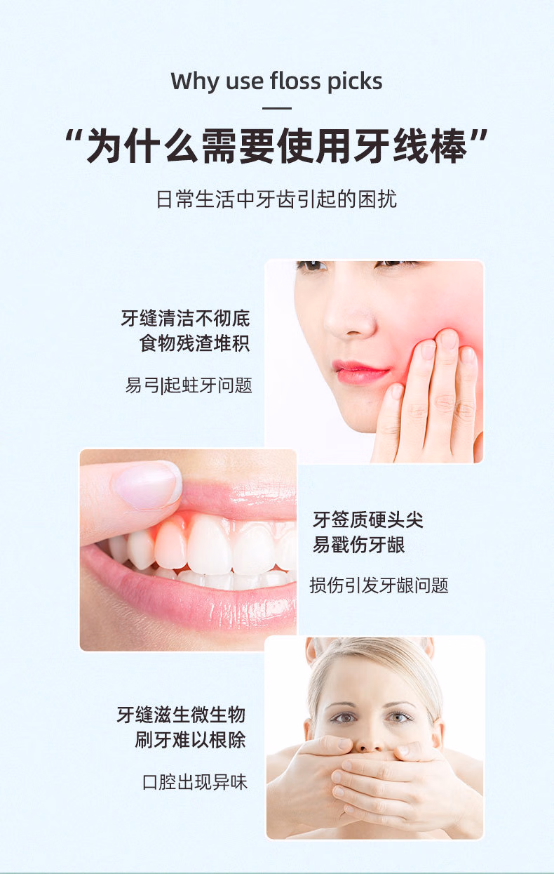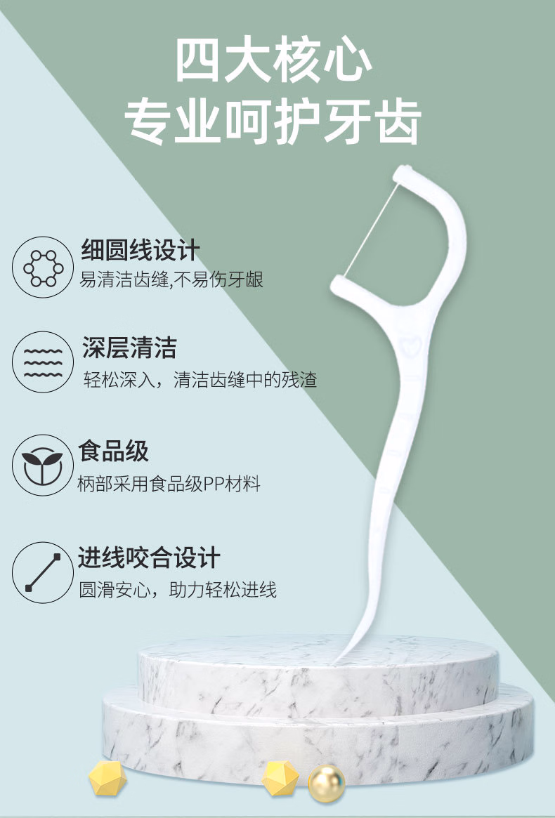 牙线棒家庭装清洁剔牙器牙缝剔牙棒一次性细牙线牙线棒牙线一盒【50支】